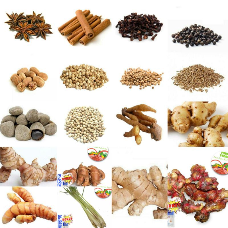 Kunyit/jahe gajah/jahe emprit merah/kencur/laos/merica/lada/kemiri/cengkeh/jinten/adas bubuk/ketumbar/tumbar/Kunir/kunyit/bunga lawang/star anise/kayu manis pack