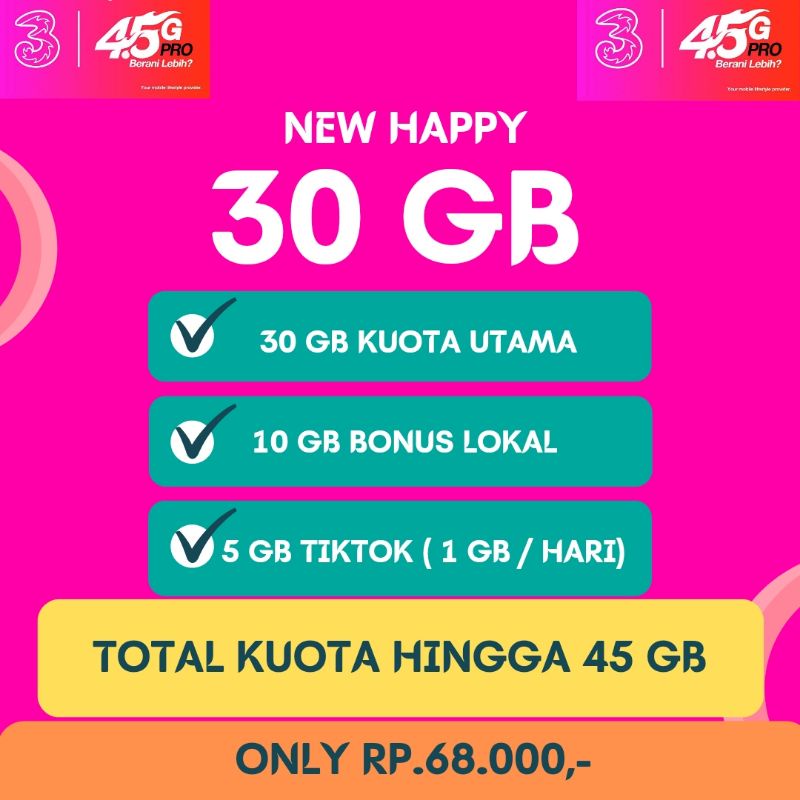 Kuota / Paket Data Tri 30 GB Aon New Happy Pure Full 24 Jam 30 Hari