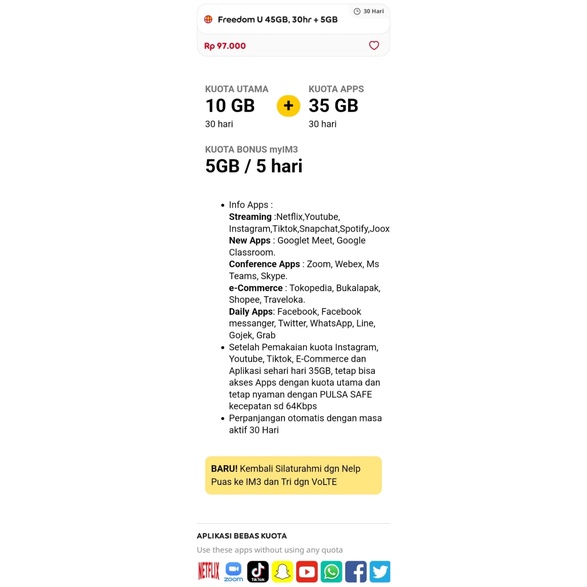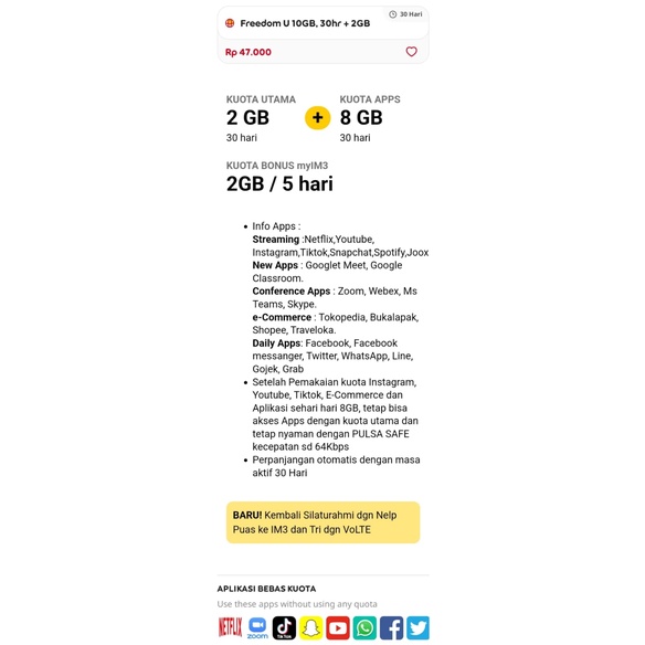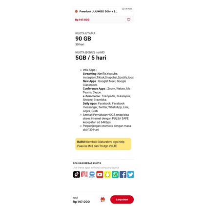 Kuota indosat 50Gb kuota utama full 24 jam paket data indosat 50gb 60gb tanpa pembagian 30 hari