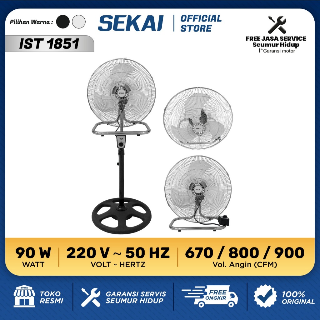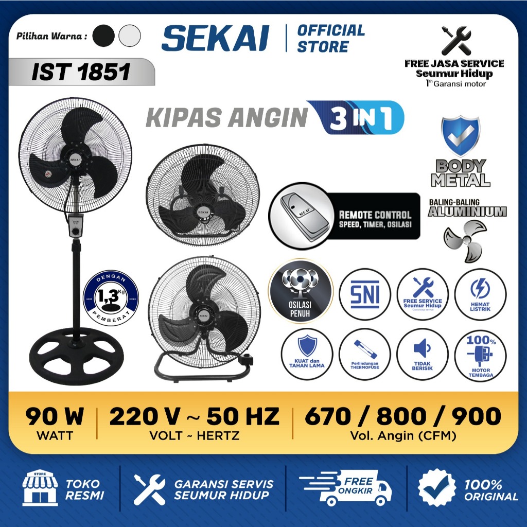 SEKAI Kipas Angin Berdiri / Kipas Angin Dinding / Kipas Angin Meja 3 in 1 Remote Control 18 Inch - IST 1851 / IST 1851RC