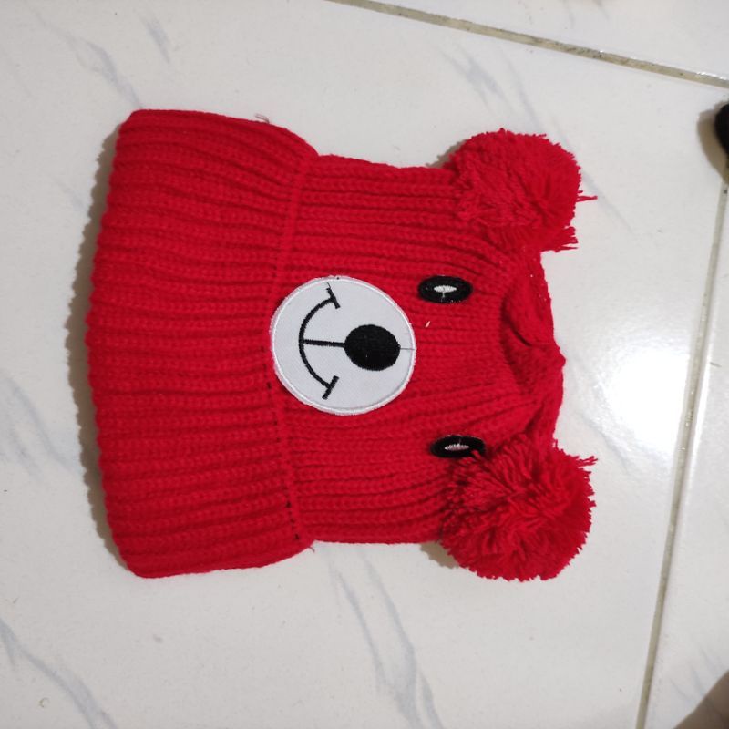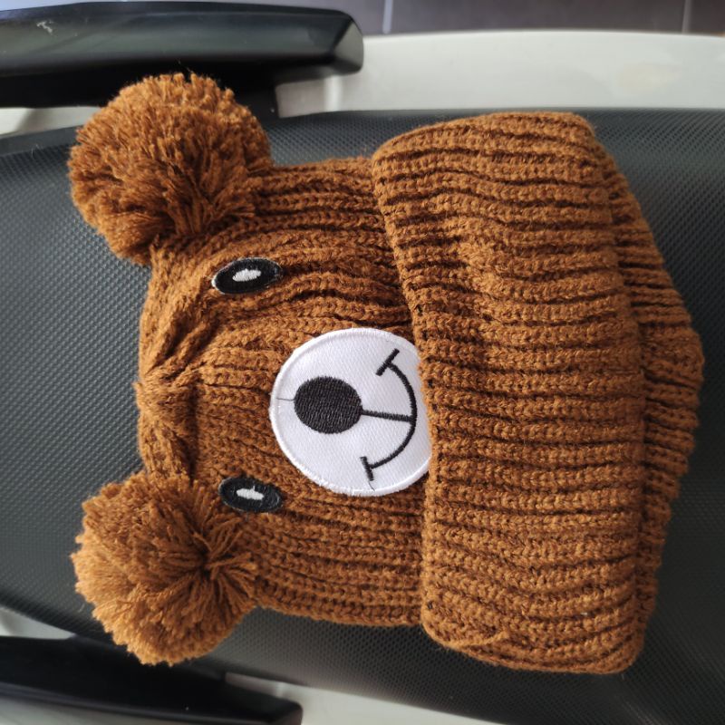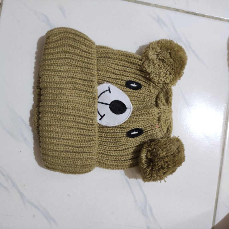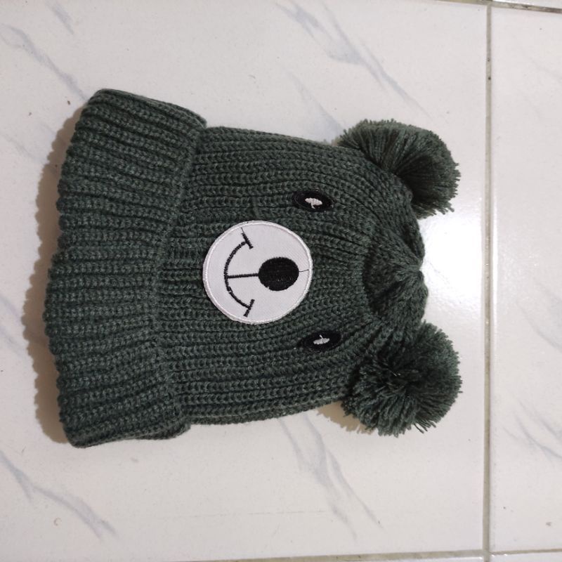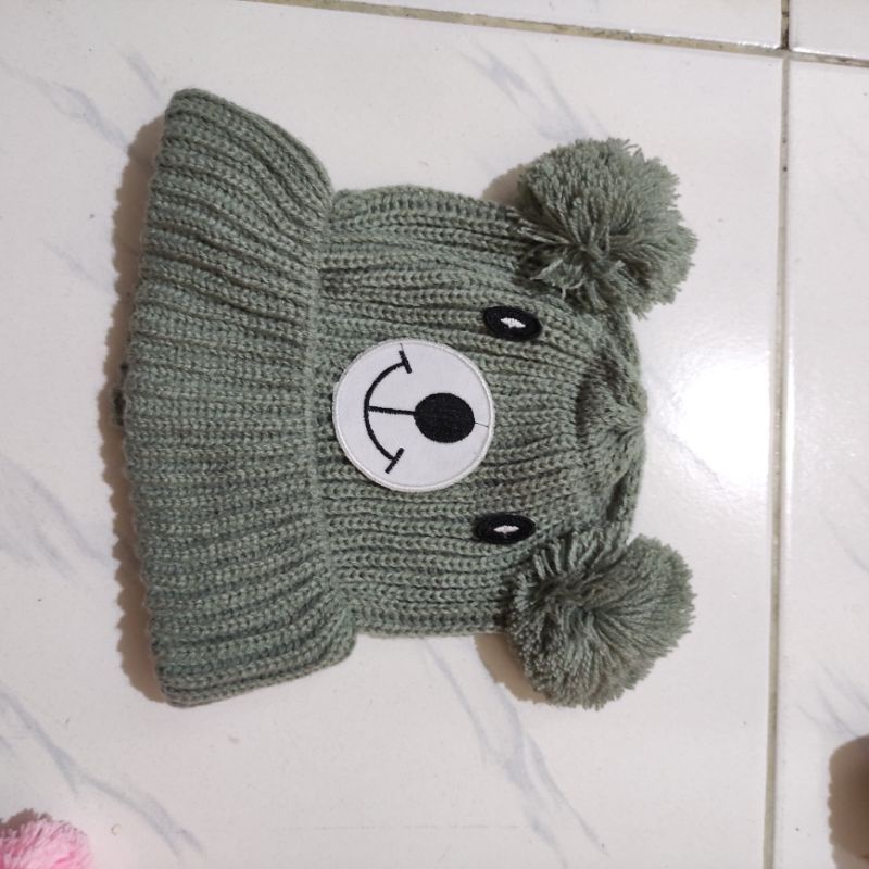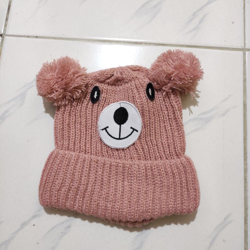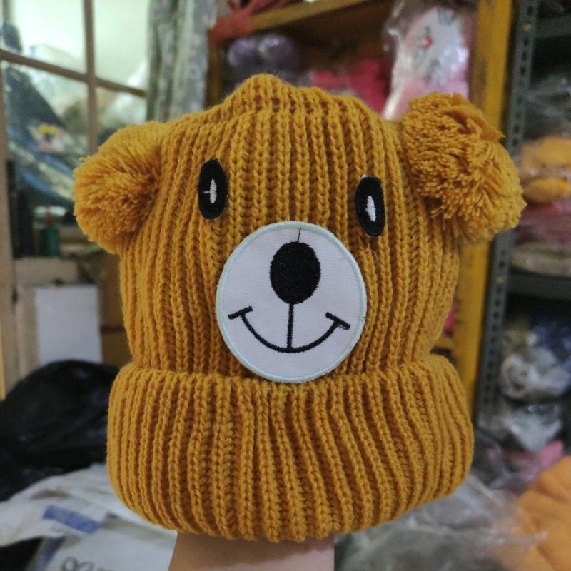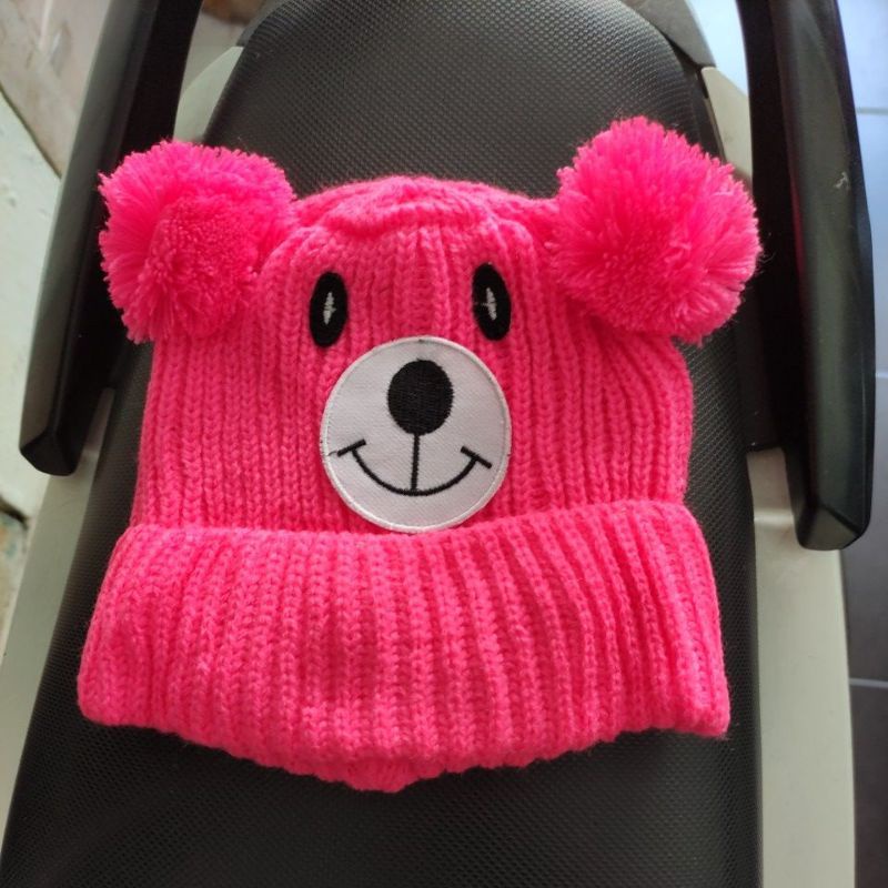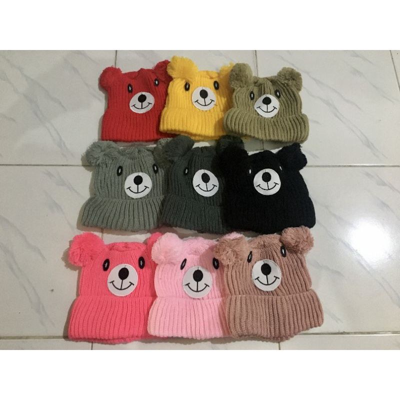 Kupluk Beanie Hat Karakter Beruang Bordir Nama Bayi Unisex Bahan Rajut