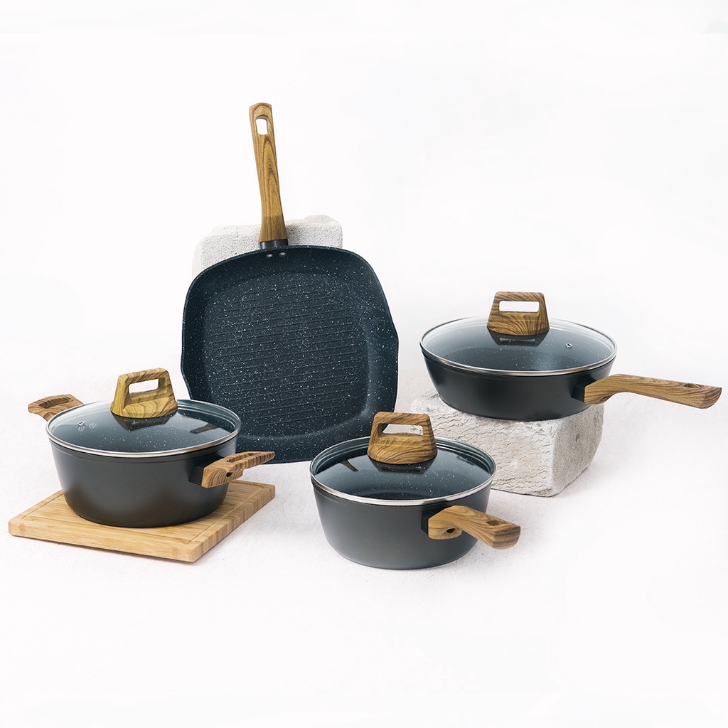 Kanahome - Kuro Series Isi 4/Panci Marble Induksi Anti Lengket