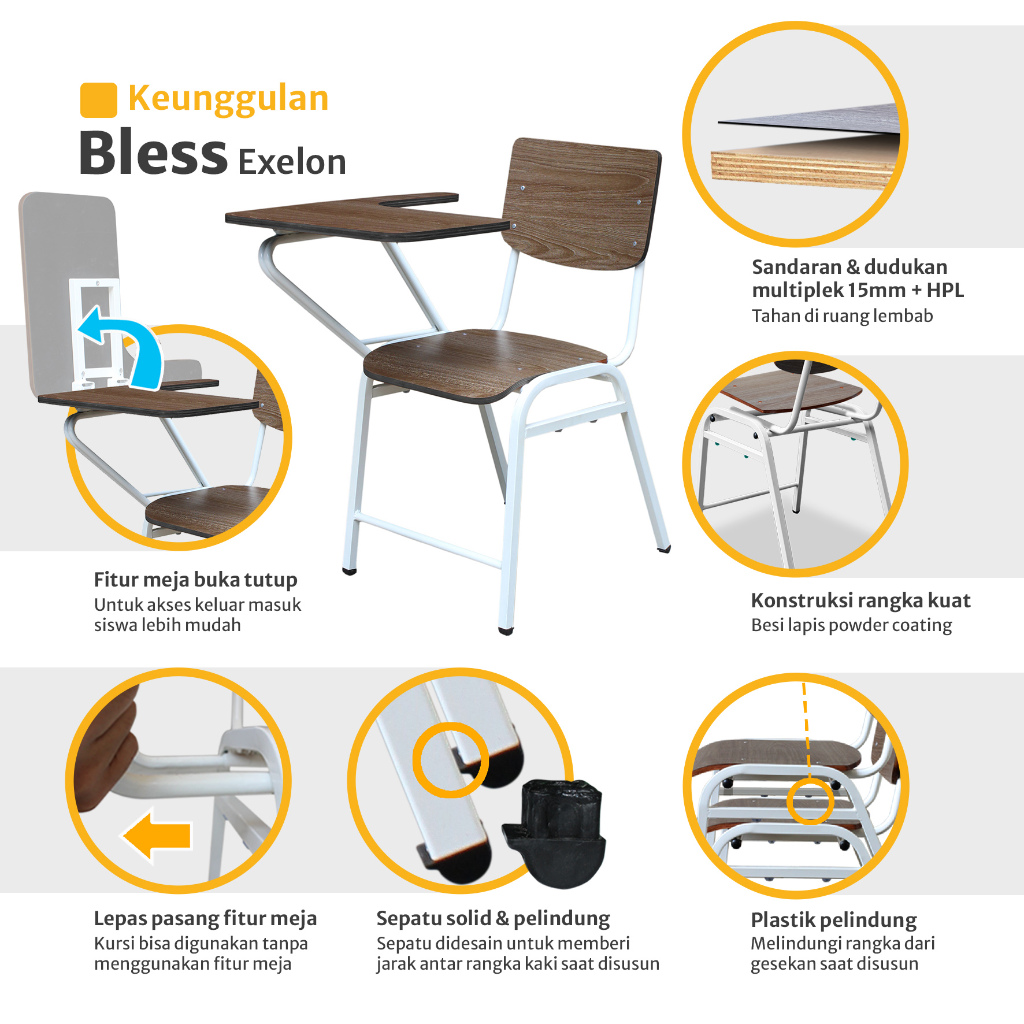 Kursi Belajar Kursi Sekolah Kursi Siswa Kursi Murid Kursi Les Kursi Kursus Kursi Training Kursi Anak Kursi Kuliah Laptop - Classmate Bless Exelon Stainless