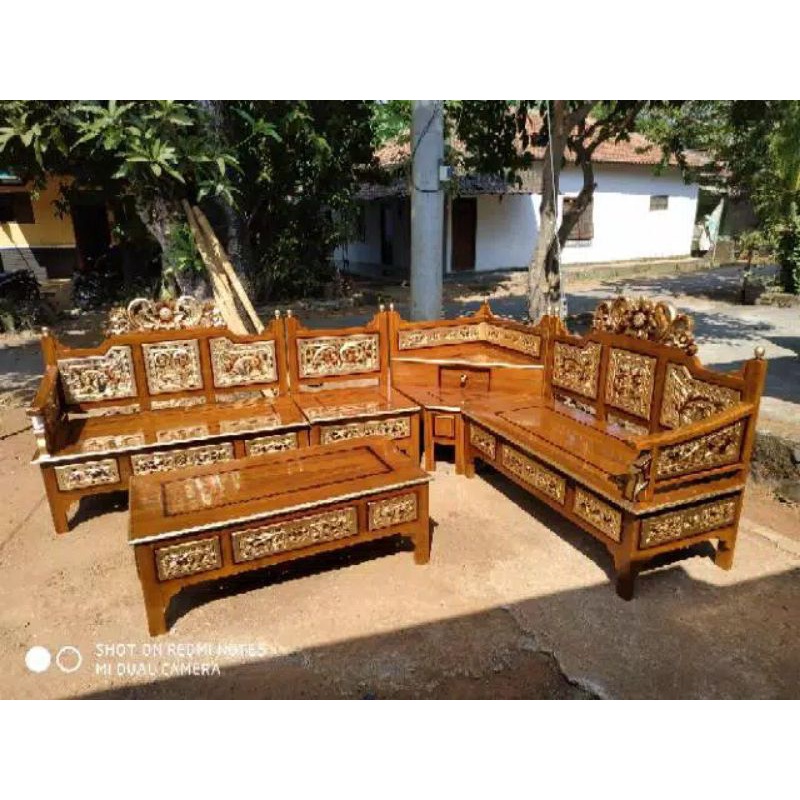 Kursi sudut mahkota kayu jati / kursi pojok ukir Jepara