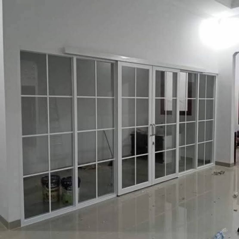 Kusen Pintu Sliding Rell Gantung Satu Daun Dan Kaca Mati