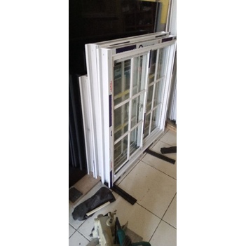 Kusen jendela aluminium sliding kaca ornamen 140x100