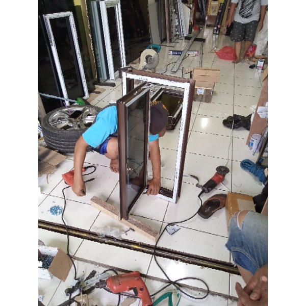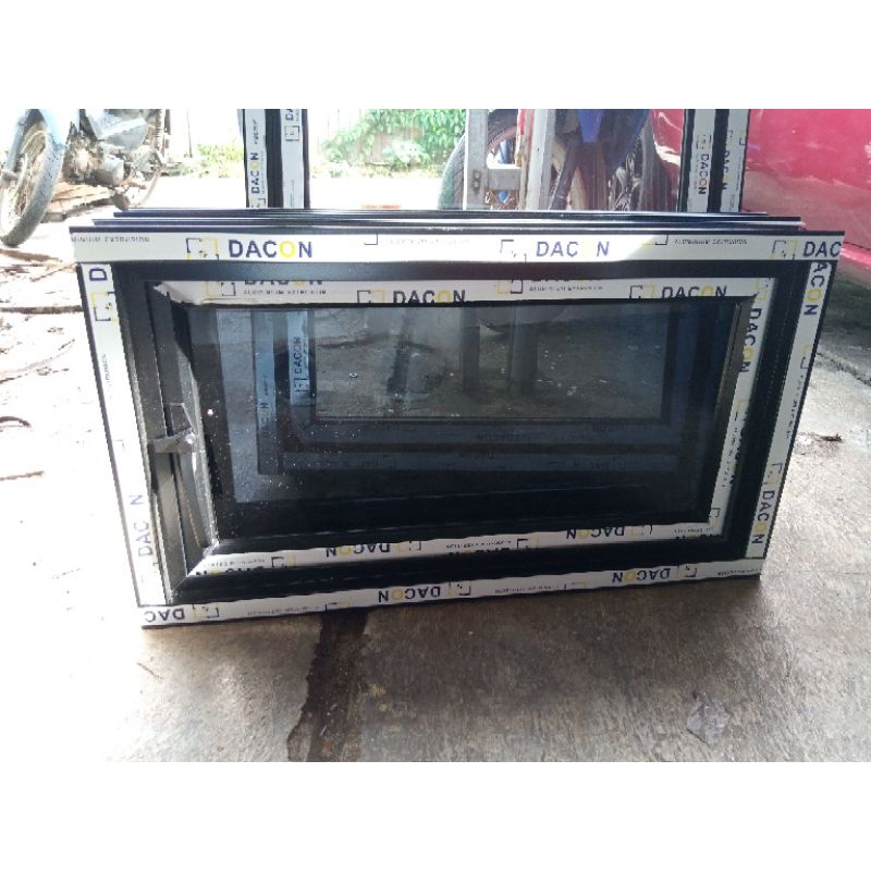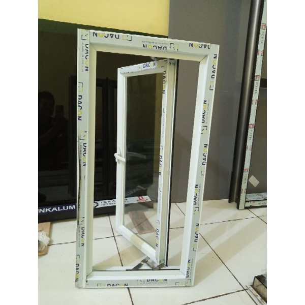 Kusen jendela aluminium ukuran 40x100 lengkap tinggal pasang