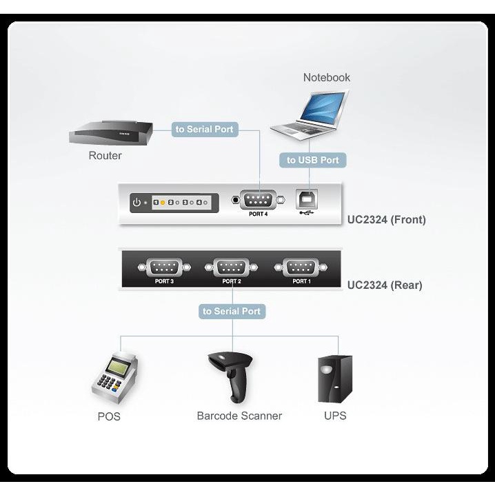 Kvm Switches - Aten - 4-Port Usb-To -Serial Rs-232 Hub Uc2324