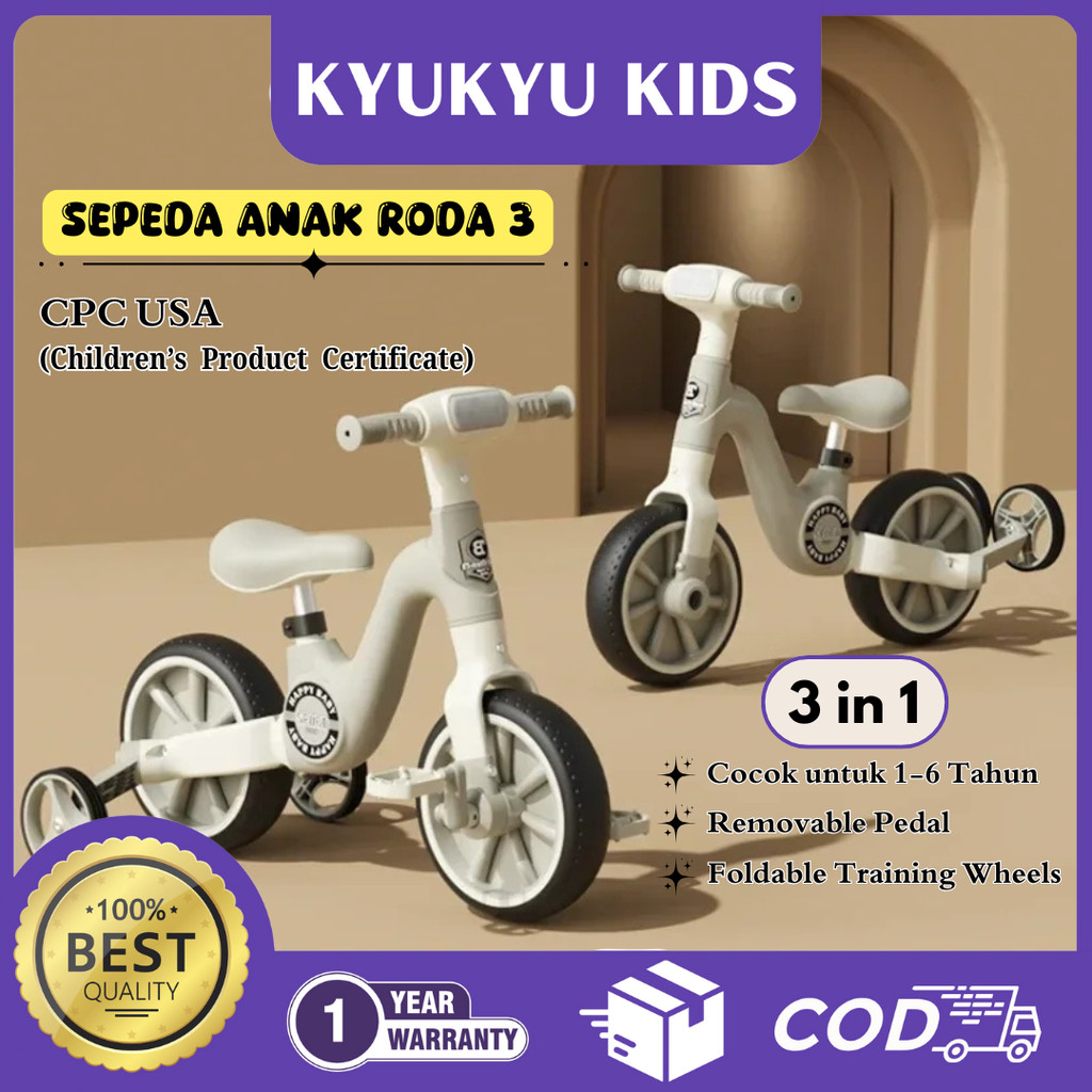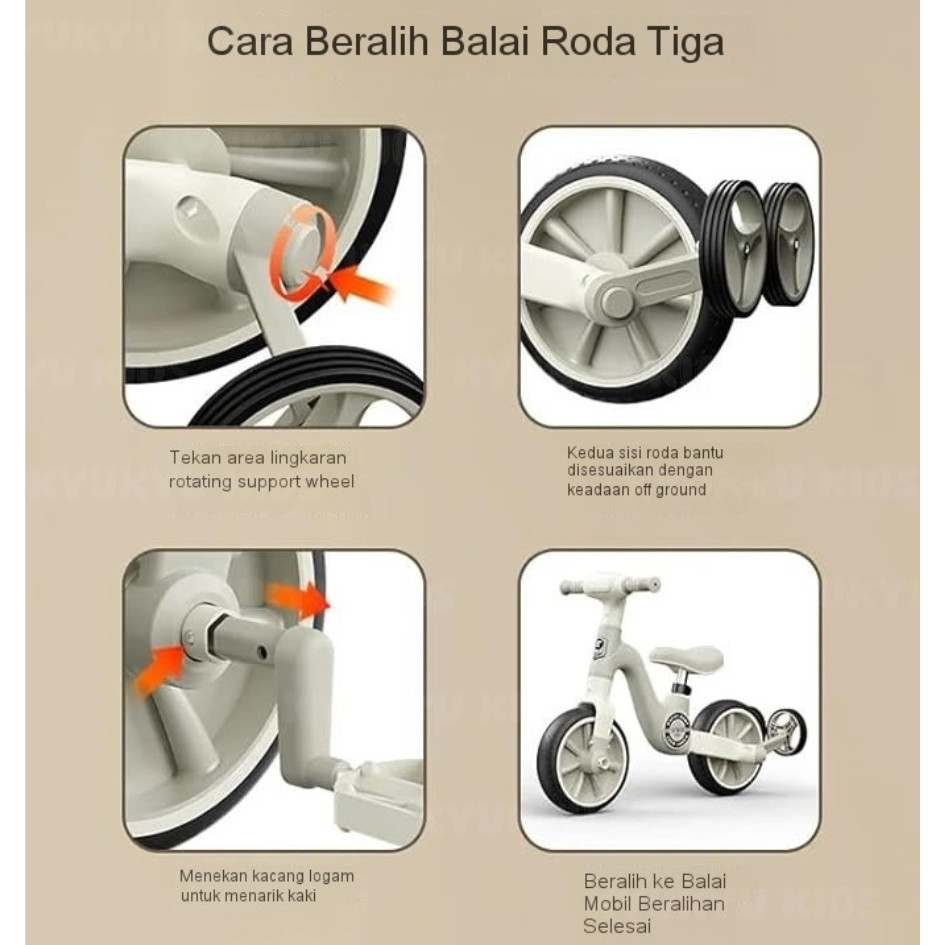 Kyukyu Kids [GARANSI 1 TAHUN] 3 in 1 Sepeda anak Roda 3 Sepeda Keseimbangan Bayi Sepeda dengan Cahaya dan Musik Baby Balance Bike Sepeda Roda 3 K3