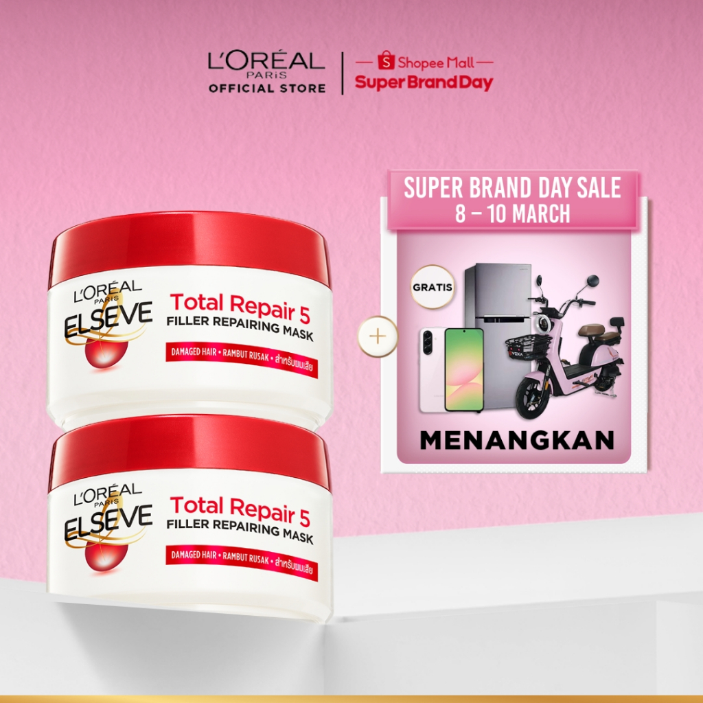 L'Oreal Paris Total Repair 5 Hair Mask Hair Care 200 ml Twinpack [Perawatan Rambut Rusak]