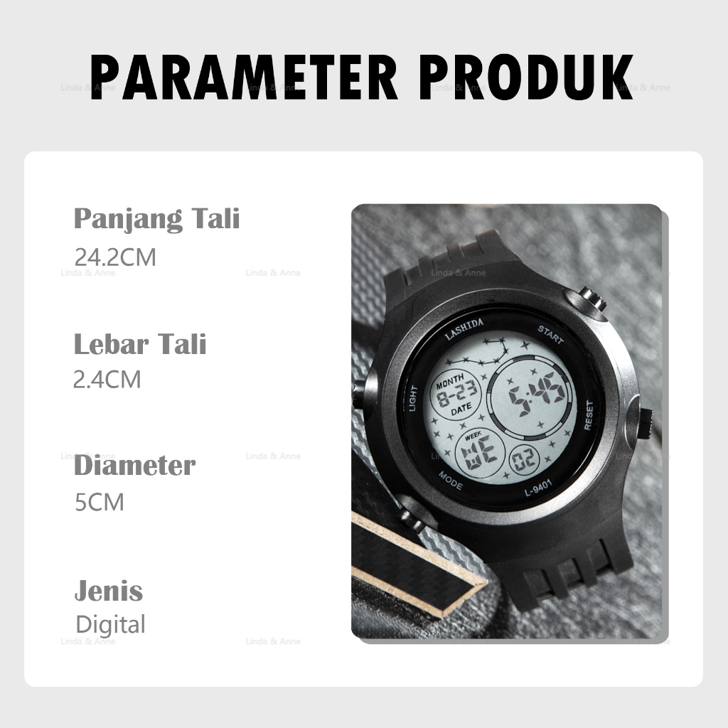 L&A - Jam Tangan Pria Waterproof Digital Sport Watch Lashida