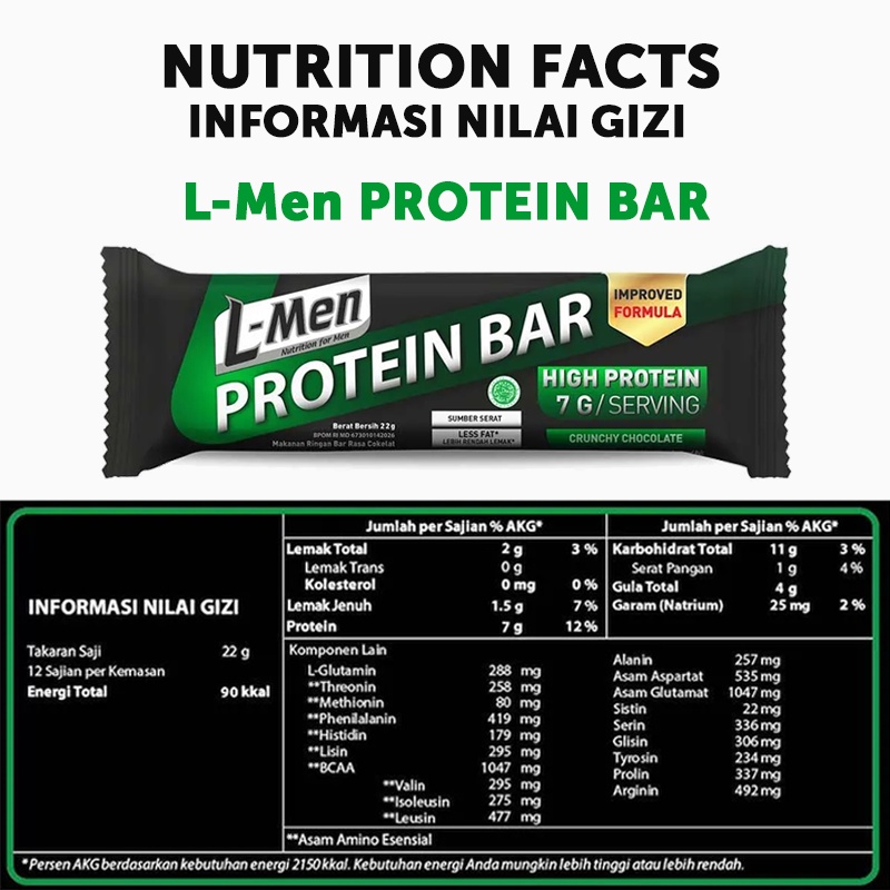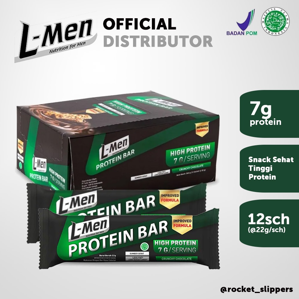 L-Men Protein Bar Crunchy Chocolate 12 sachet - Camilan Rendah Lemak Tinggi Protein