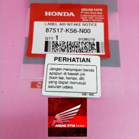 LABEL AIR INTAKE NOTICE STICKER STIKER PERHATIAN HONDA SONIC SUPRA GTR CBR 150 R ORIGINAL
