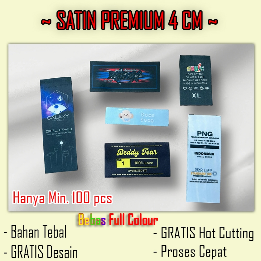 LABEL BAJU PREMIUM 4 CM/ LABEL KERUDUNG / LABEL SATIN CUSTOM / LABEL baju / Label Kerah