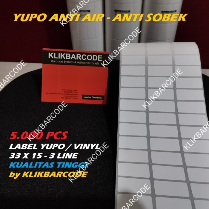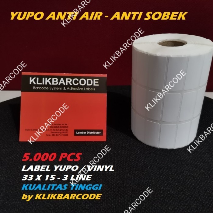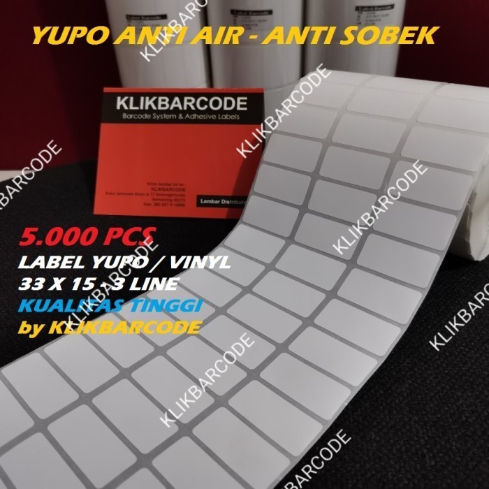 LABEL BARCODE 33 X 15 (3 LINE) KERTAS STICKER LABEL YUPO 33x15 - 5.000