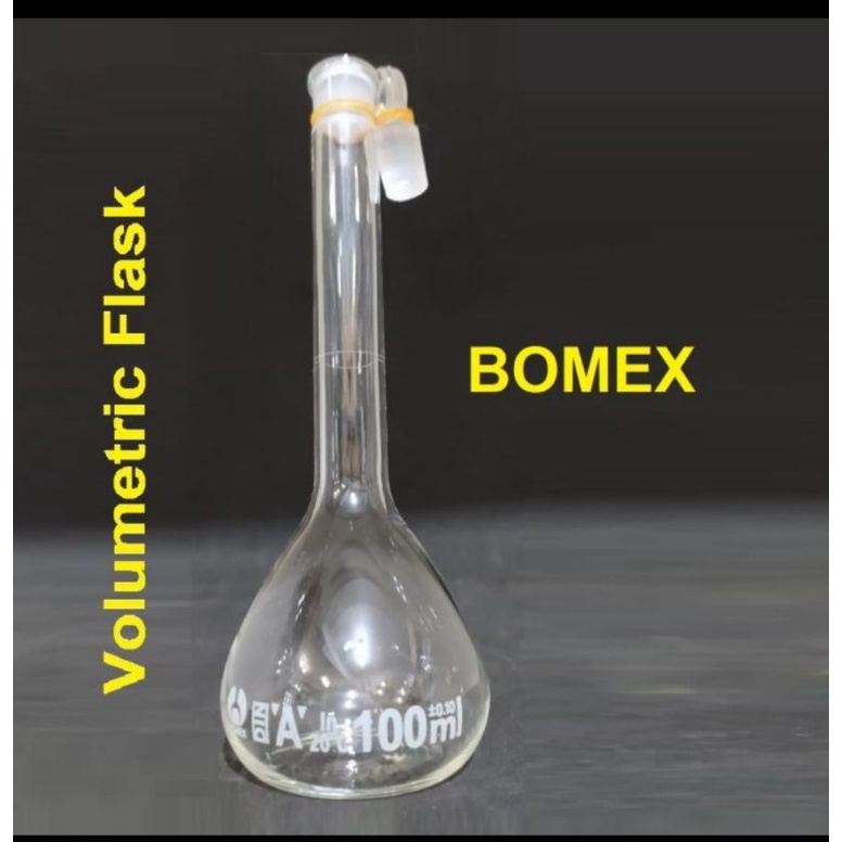LABU UKUR COKLAT 100 ML LABU TAKAR VOLUMETRIC FLASK WITH STOPPER CHINA