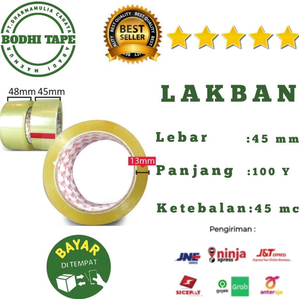LAKBAN BODHI BENING & COKLAT 45mm X 100yard Termurah Berkualitas Terbaik