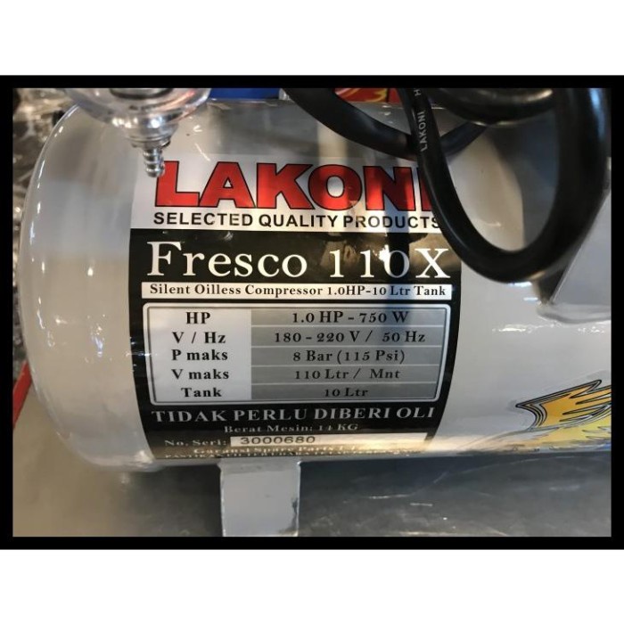 LAKONI KOMPRESOR OILLESS 10 LITER 1 HP AIR COMPRESSOR 10L FRESCO 110X