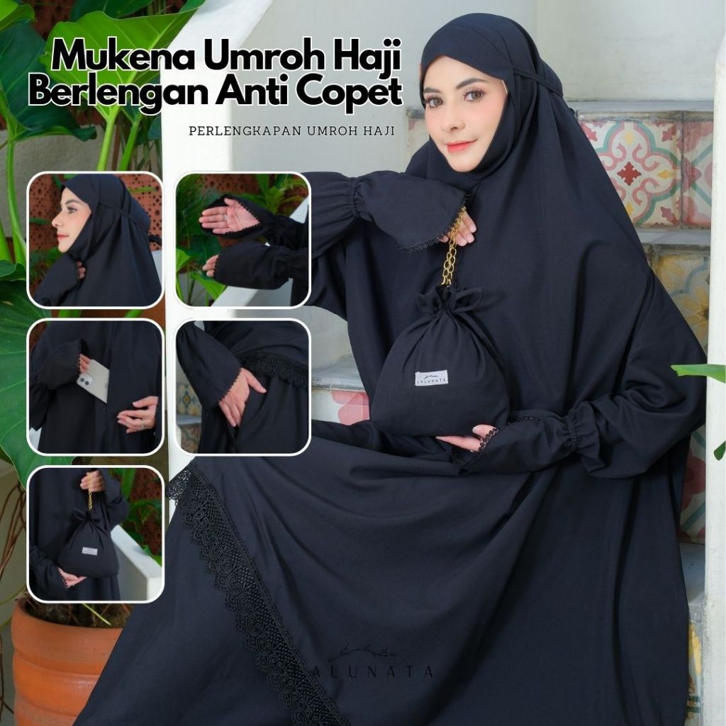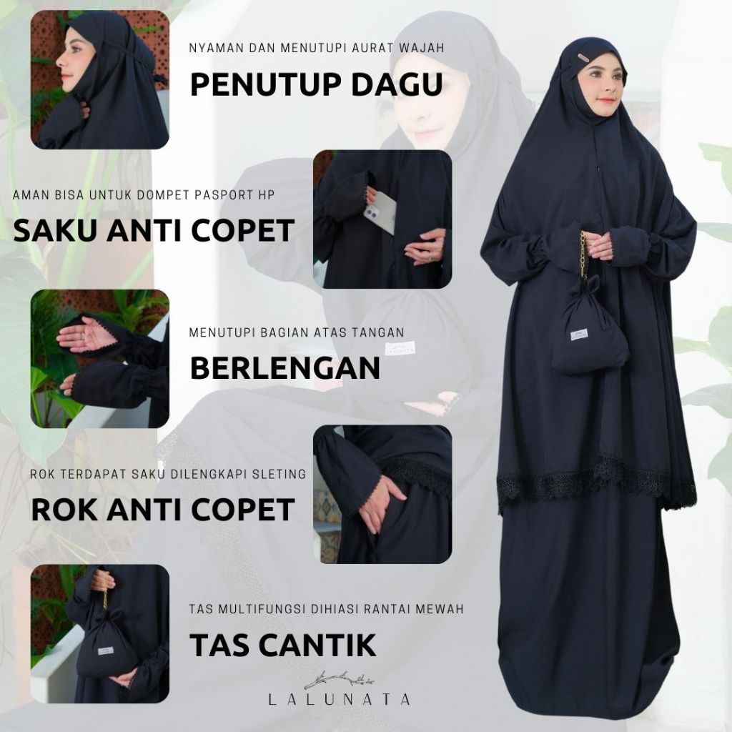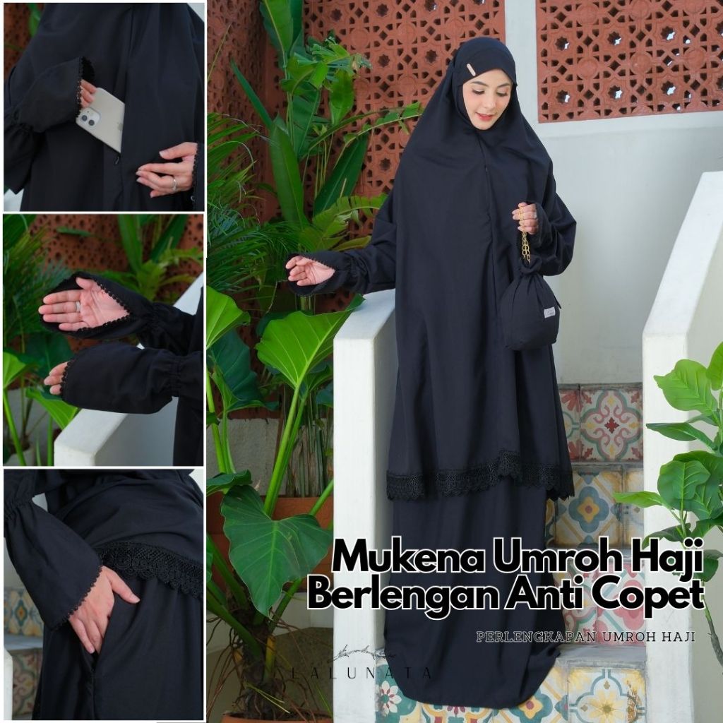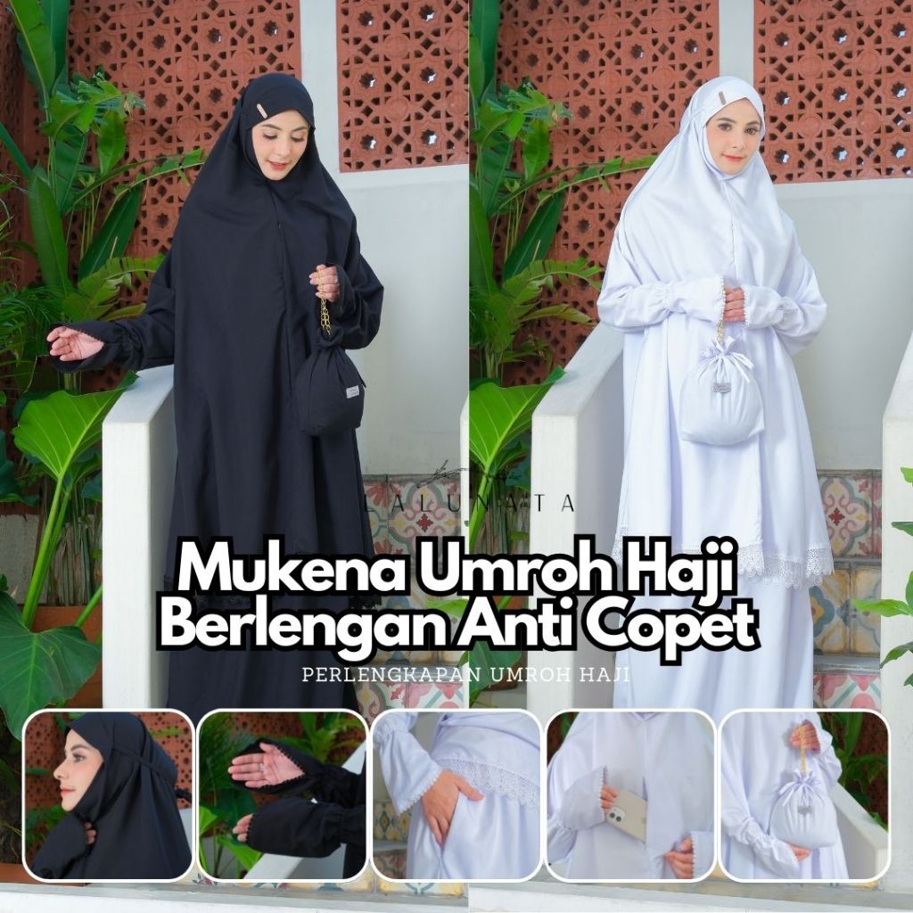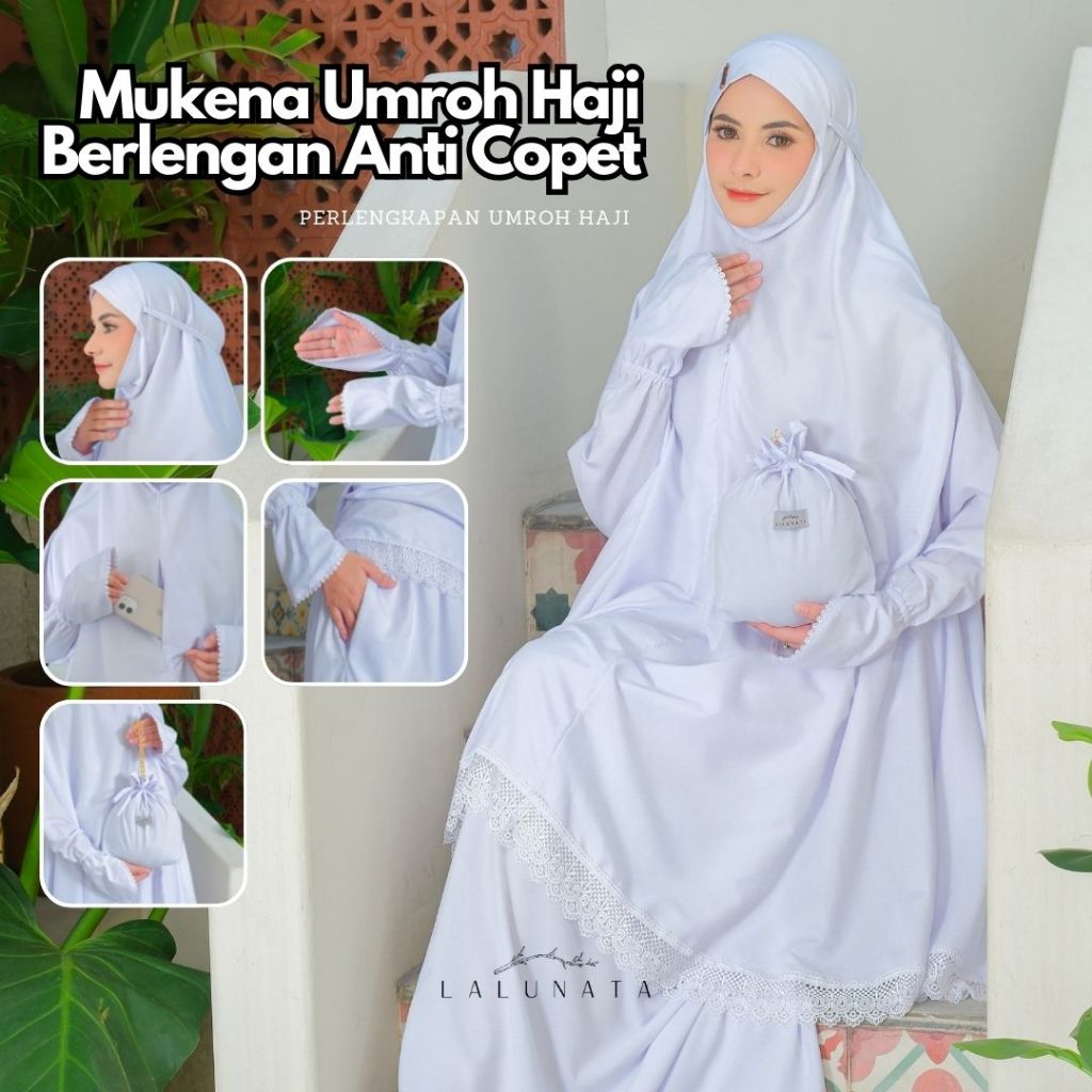 LALUNATA - Mukena Umroh Haji Dewasa Renda Mewah Aisyah Berlengan Anti Copet By Lalunata