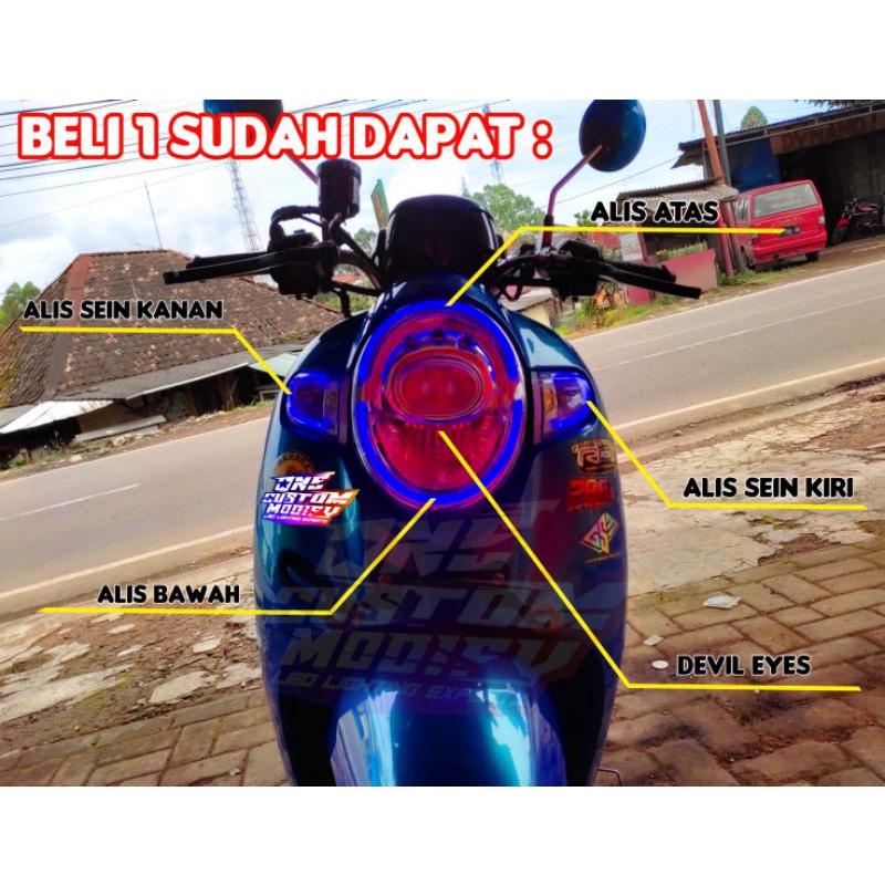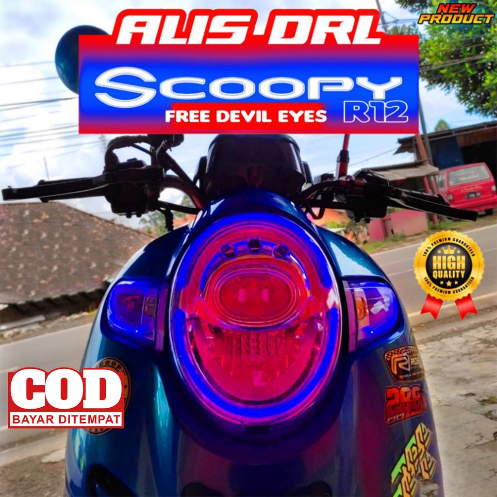 LAMPU ALIS DRL SCOOPY BONUS LED DEVIL EYES LAMPU SENJA SEIN VARIASI LAMPU DEPAN SCOOPY LAMPU LED SCOOPY 2017 2018 2019 2020 SEPAKET LAMPU ALIS SCOOPY SCOOPY DONAT SATU SET SIAP PAKAI