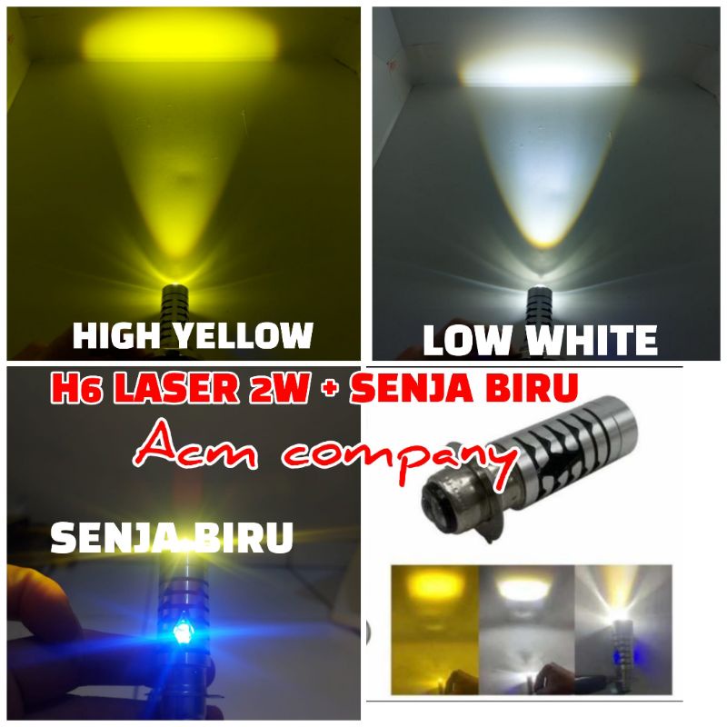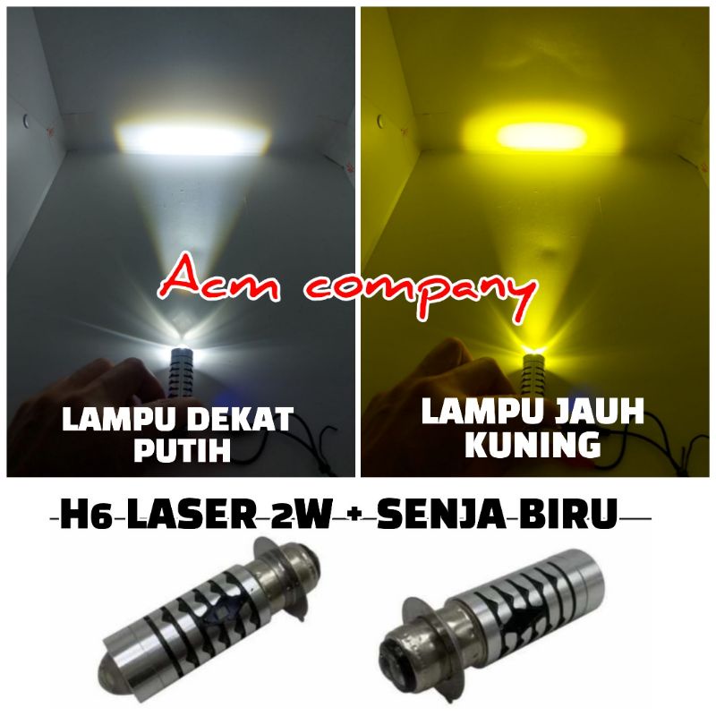 LAMPU DEPAN LED LASER 2WARNA PUTIH KUNING H6 + SENJA BIRU MATIC BEBEK