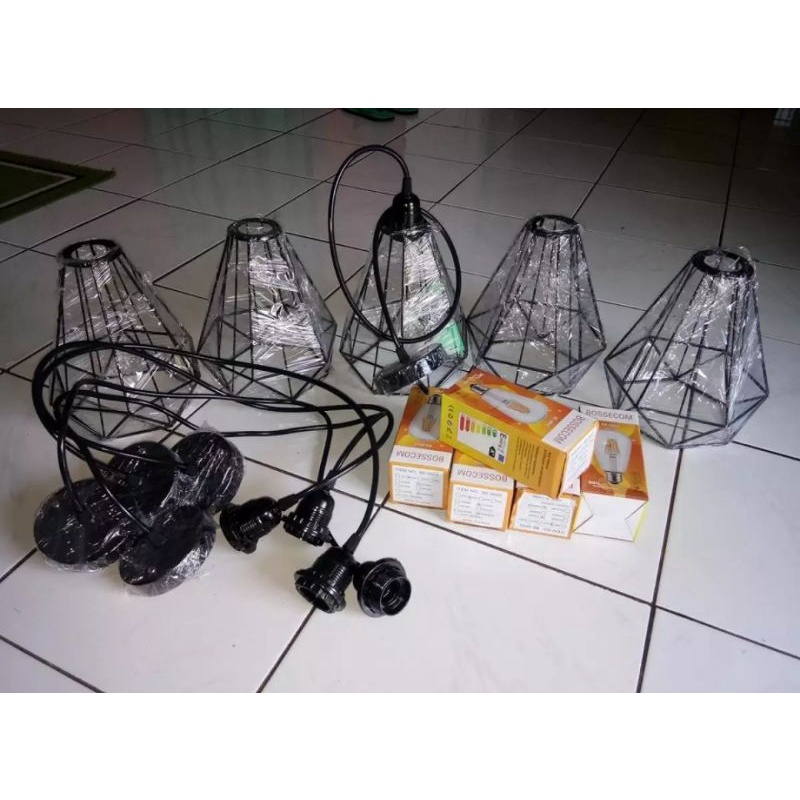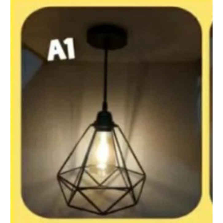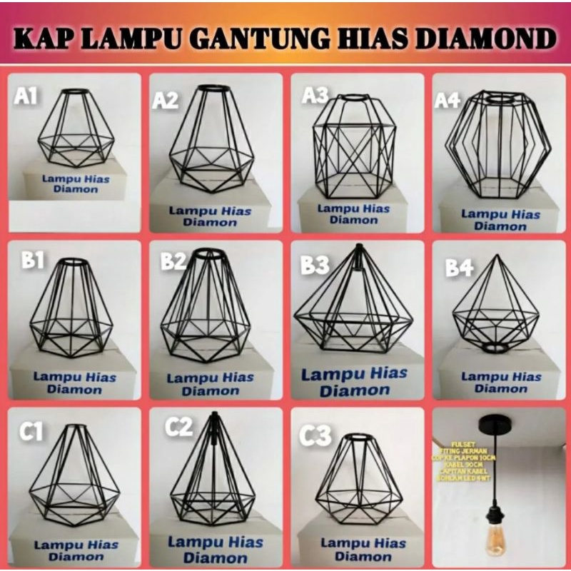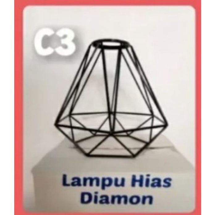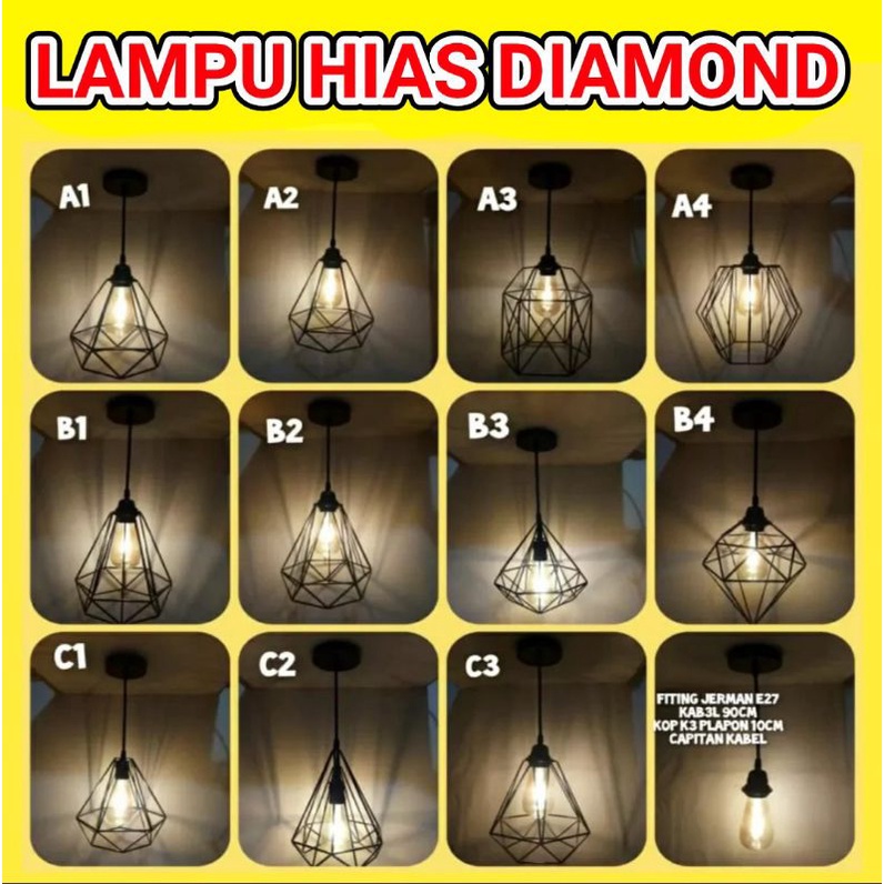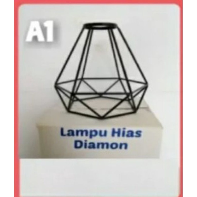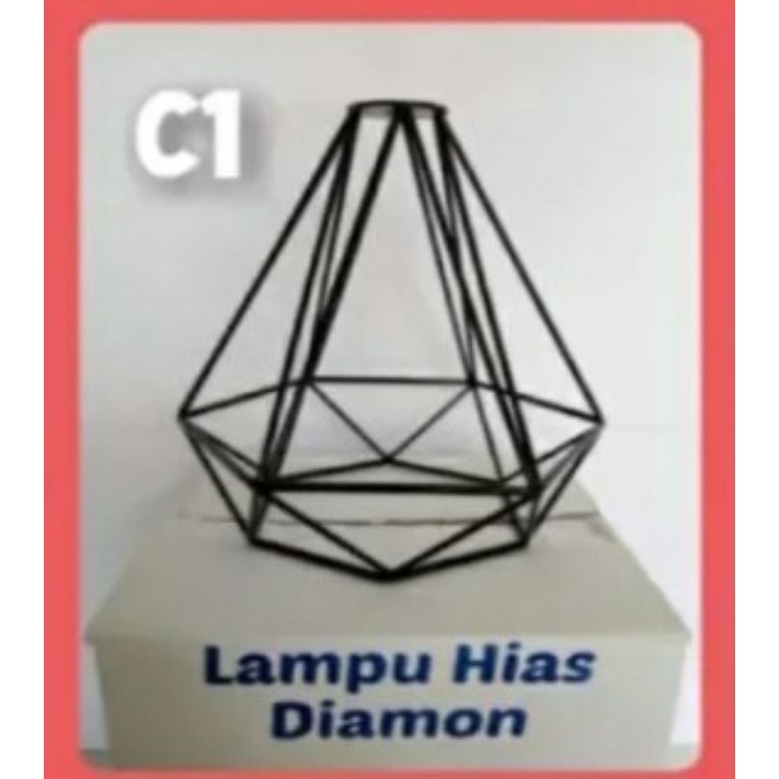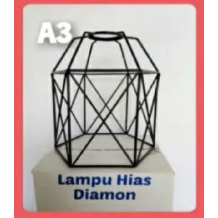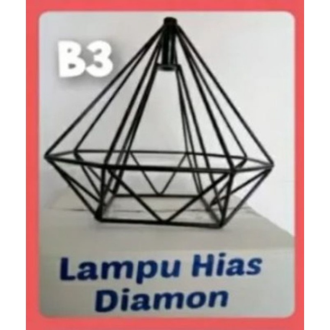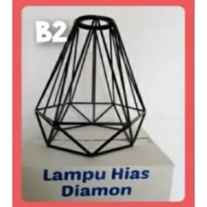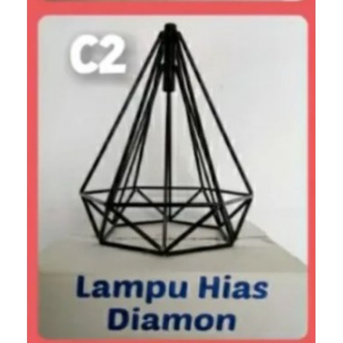 LAMPU DIAMOND / LAMPU HIAS DIAMOND / LAMPU GANTUNG / KAP LAMPU HIAS / LAMPU DEKORASI CAFE , BAHAN BESI BAJA TEBAL CAT COUTING MULUS DIAMETER 20CM PANJANG 22CM ,JUAL TERPISAH