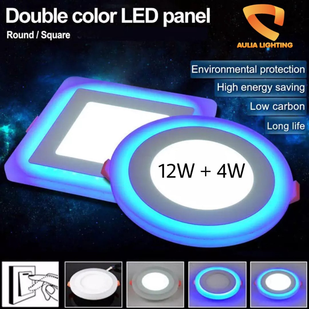 LAMPU DOWNLIGHT 2 WARNA BULAT KOTAK PUTIH BIRU 16W 12W + 4W PANEL HIAS BULAT 3 STEP CEILING PLAFON