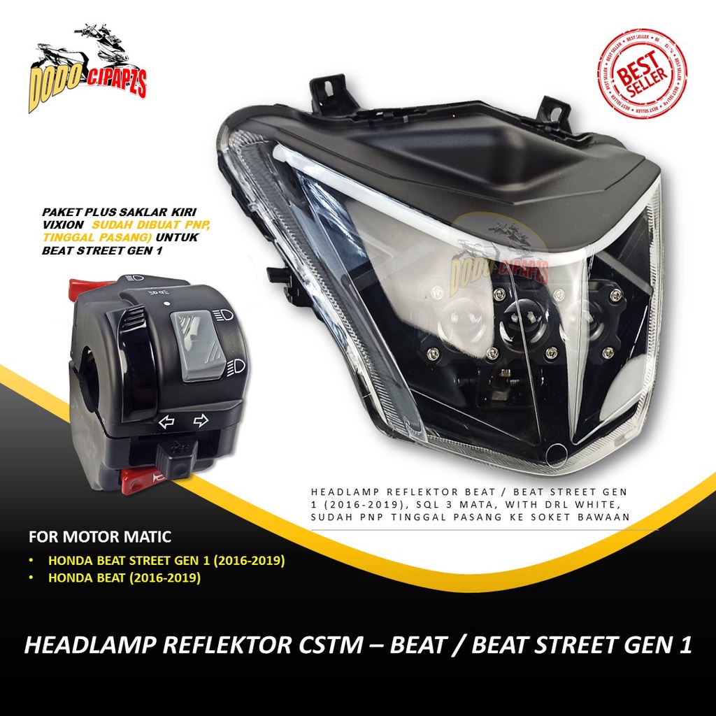 LAMPU HEADLAMP BEAT DAN BEAT STREET GEN 1 MODEL CSTM / REFLEKTOR BEAT DAN BEAT STREET / LAMPU UTAMA BEAT DAN BEAT STREET GEN 1 MODEL CSTM/ LAMPU DEPAN BEAT DAN BEAT STREET GEN 1 MODEL CSTM / LAMPU BEAT STREET GEN 1