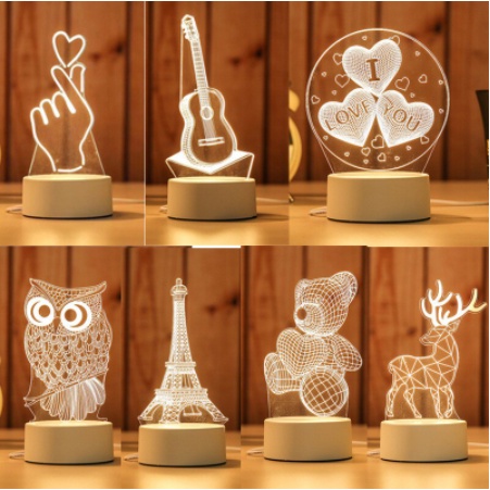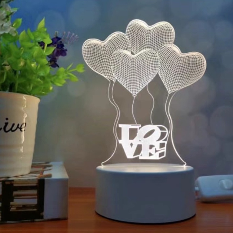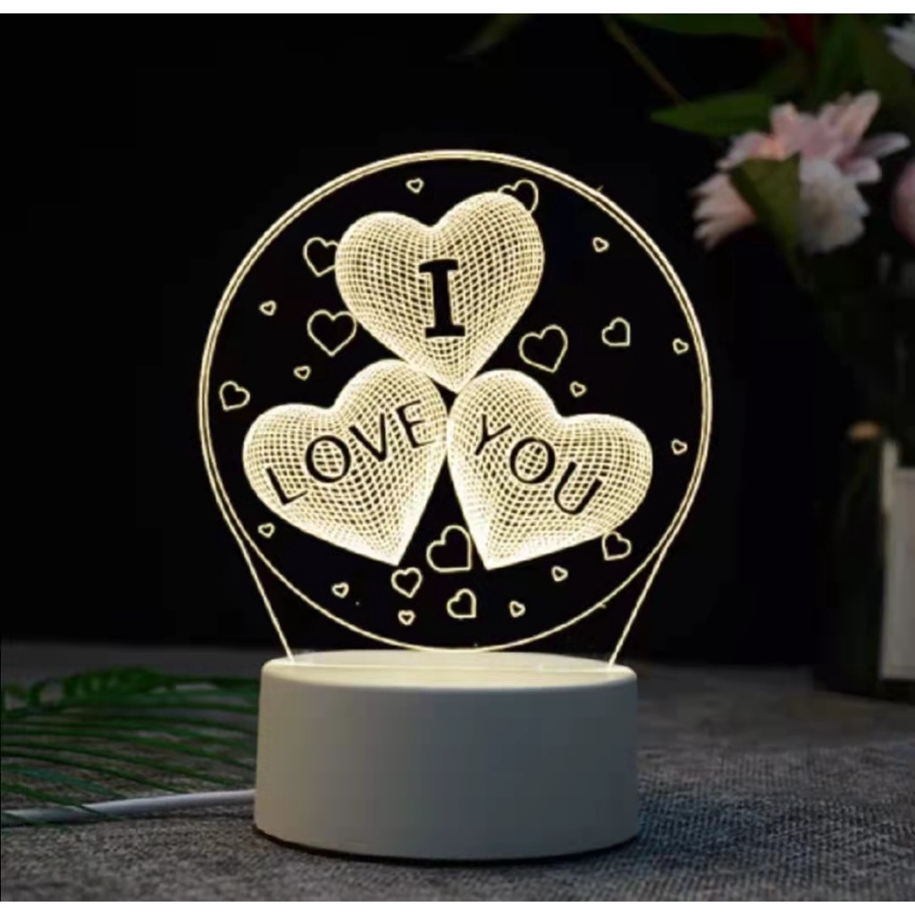 LAMPU HIAS LED 3D / LAMPU TIDUR HIAS DIMENSI 3 WARNA PUTIH KUNING WARMWHITE LAMPU 3D LED KACA TRANSPARAN TINGGAL COLOK