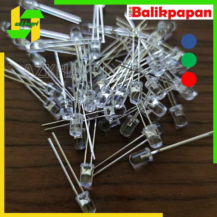 LAMPU LED 5MM TRANSPARAN SUPER BRIGHT Biru Hijau Merah Putih