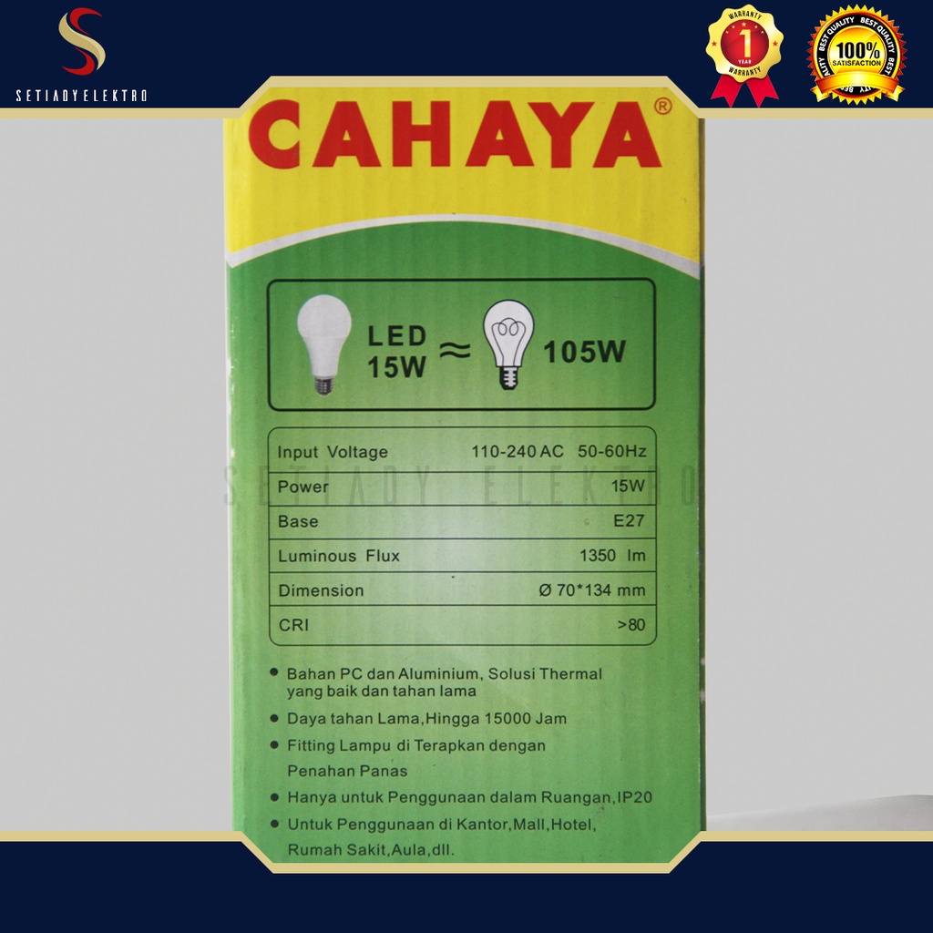 LAMPU LED Cahaya 15 Watt Putih cahaya Terang Original - Garansi 1 Tahun