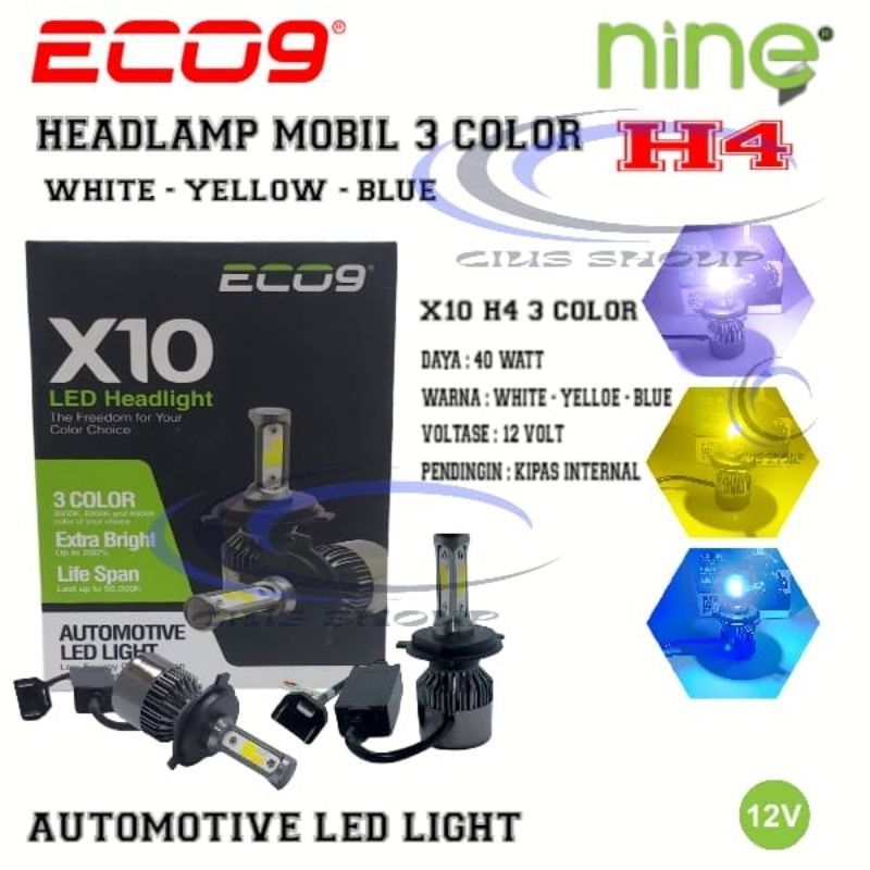 LAMPU LED HEADLAMP/FOOGLAMP MOBIL X10 ECO9 3 COLOR WHITE YELLOW ICE BLUE H4 H11 H7 HB4(9006) FOGLAMP / HEADLAMP MOBIL