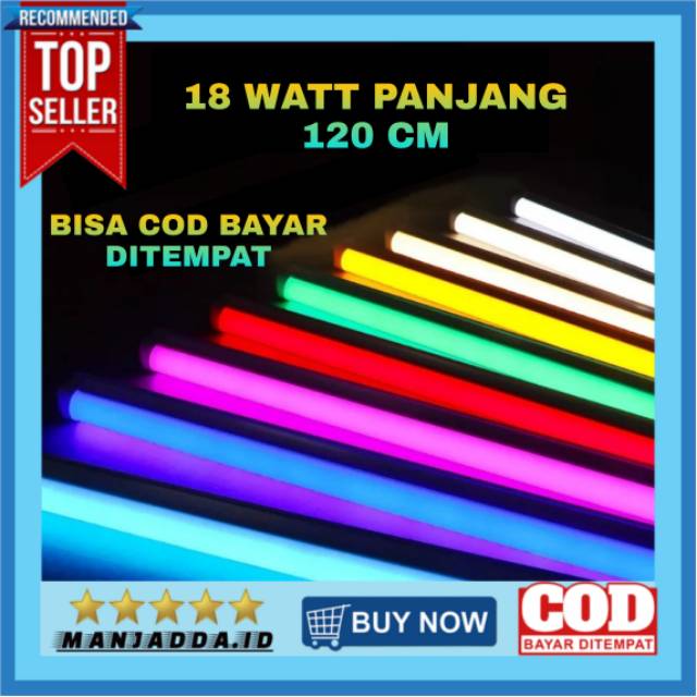 LAMPU LED HIAS NEON 18 WATT DINDING TEMPEL PANJANG 120 CM PENCAHAYAAN LAMPU BERWARNA WARNI