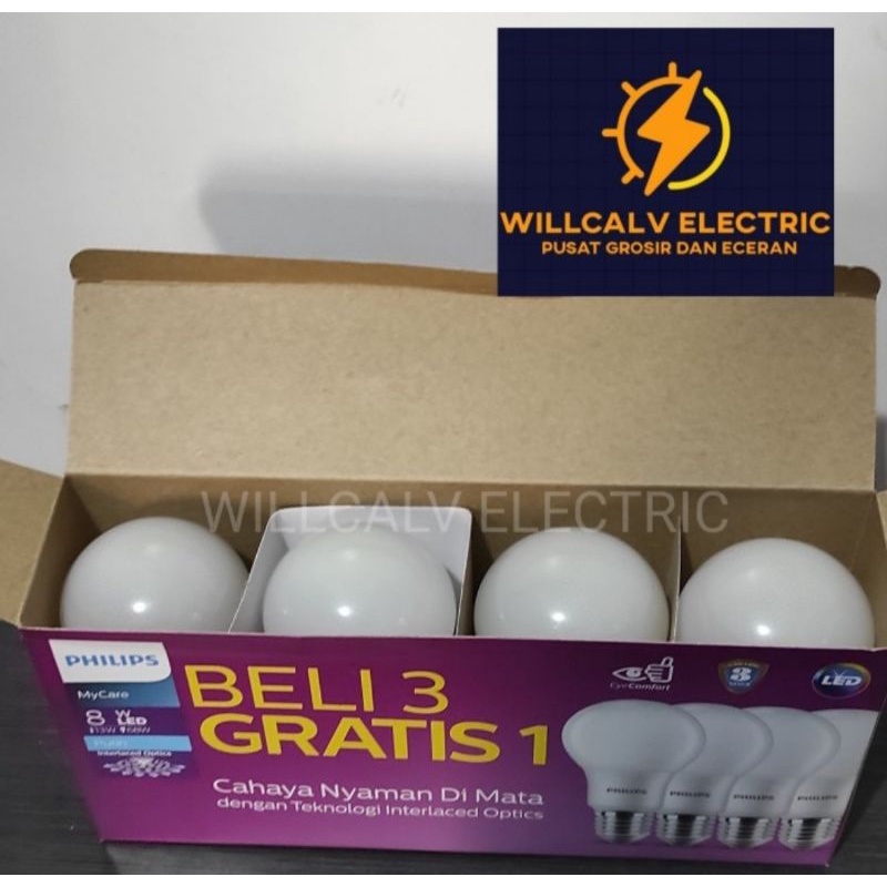LAMPU LED PHILIPS PAKET ISI 4 PC 8W 8WATT 8 WATT - LAMPU LED PHILIPS MULTIPACKS 8W 8WATT 8 WATT