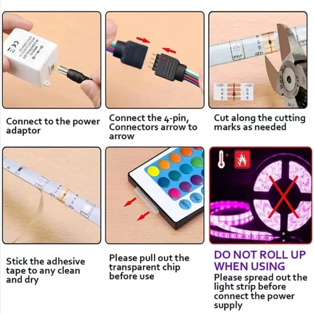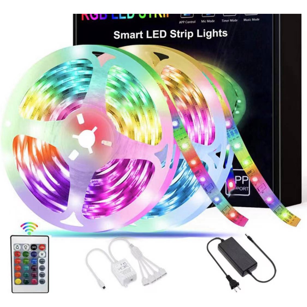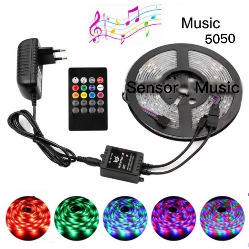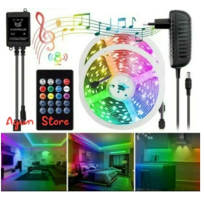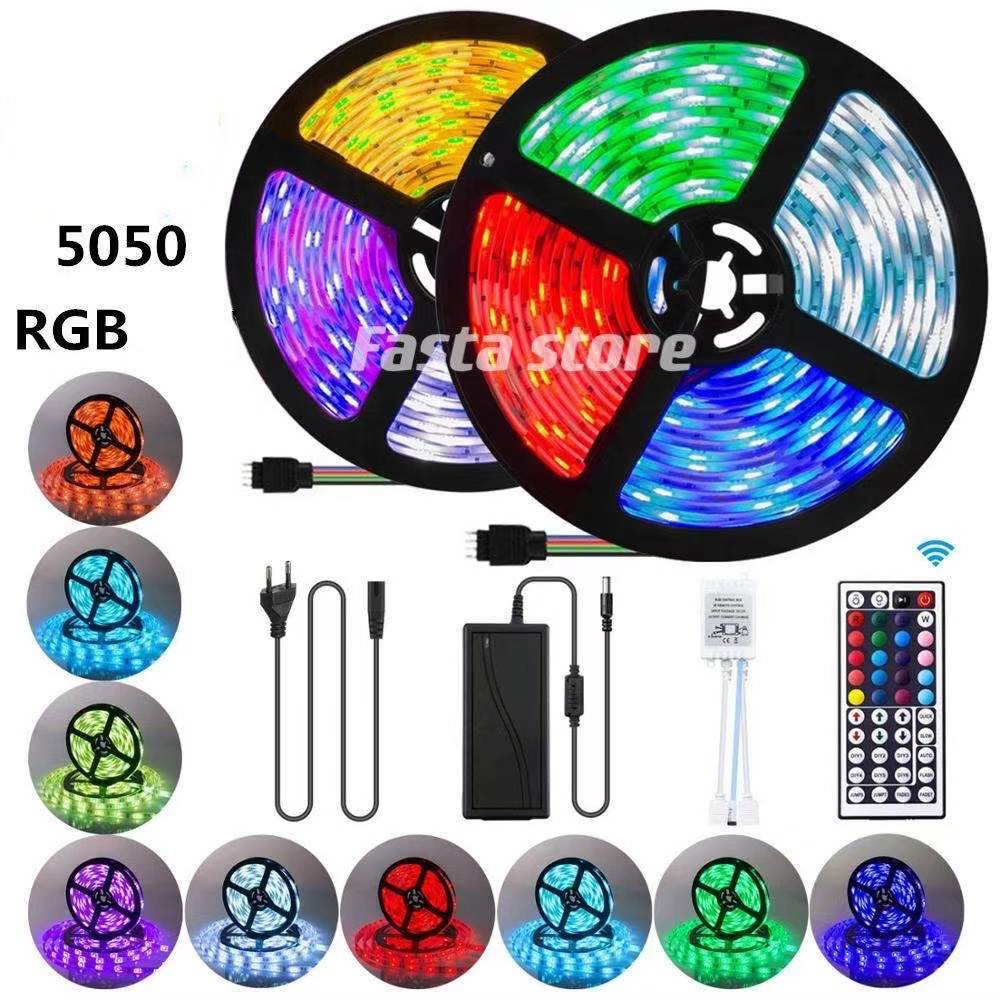 LAMPU LED STRIP 2835 3528 5050 5M 10M RGB SET WARNA WARNI IP44 AC 220V + ADAPTOR + REMOTE
