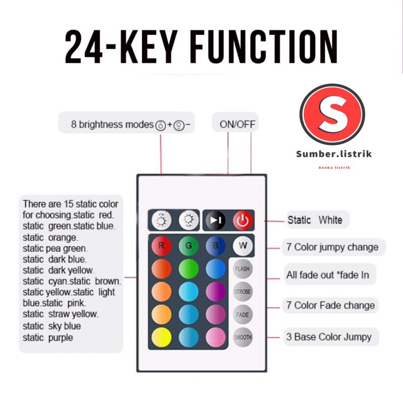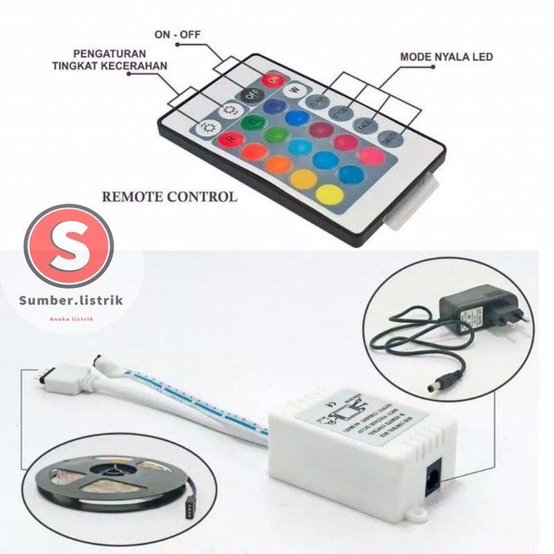 LAMPU LED STRIP 3528 2835 RGB WATERPROOF WARNA WARNI IP44 5M AC 220V + ADAPTOR + REMOTE 3528