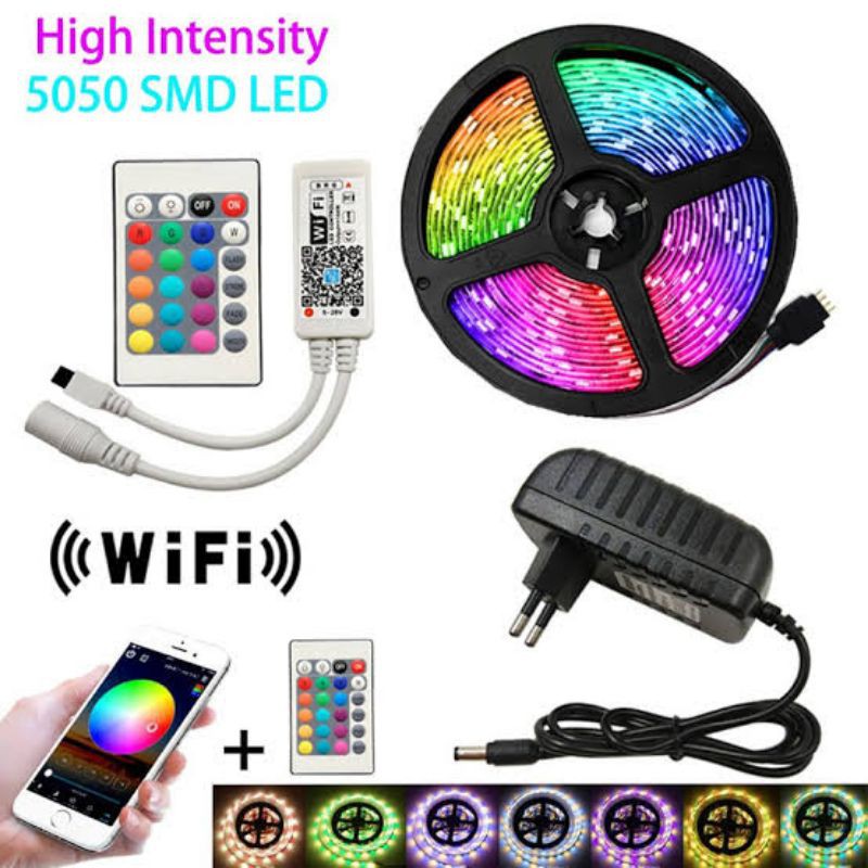 LAMPU Led Strip Rgb Paket 5Meter Smd 5050 12V Lampu Youtuber Led Hias Plafon Etalase 9 Warna Vames
