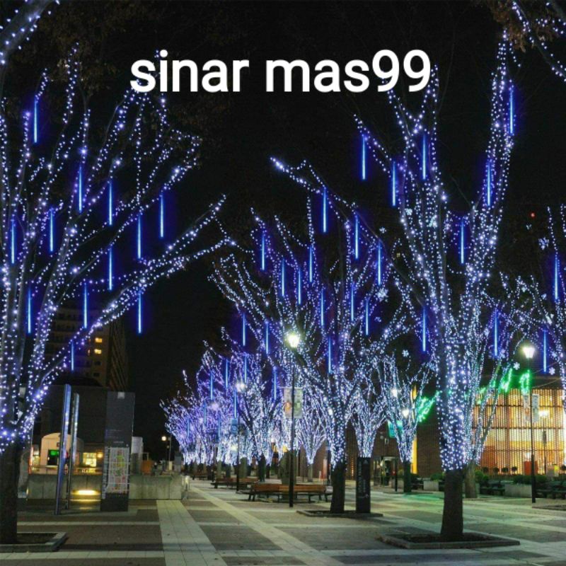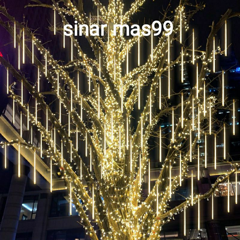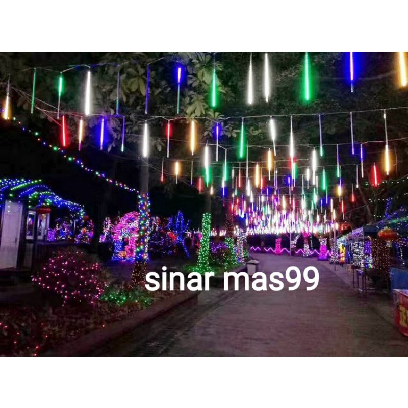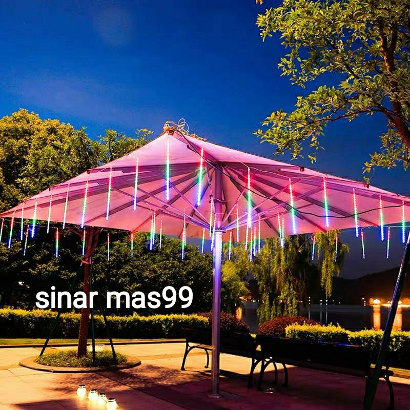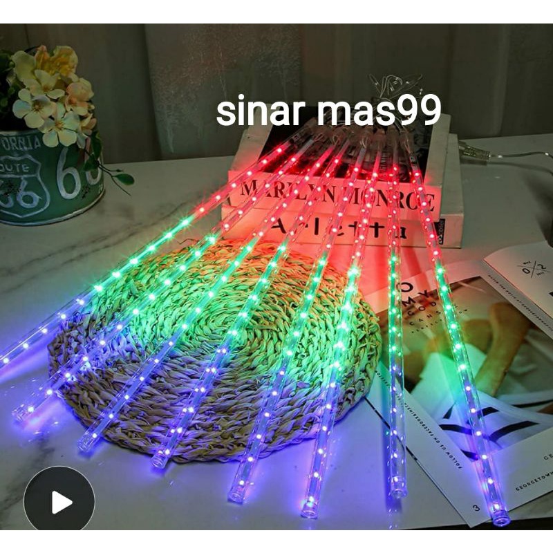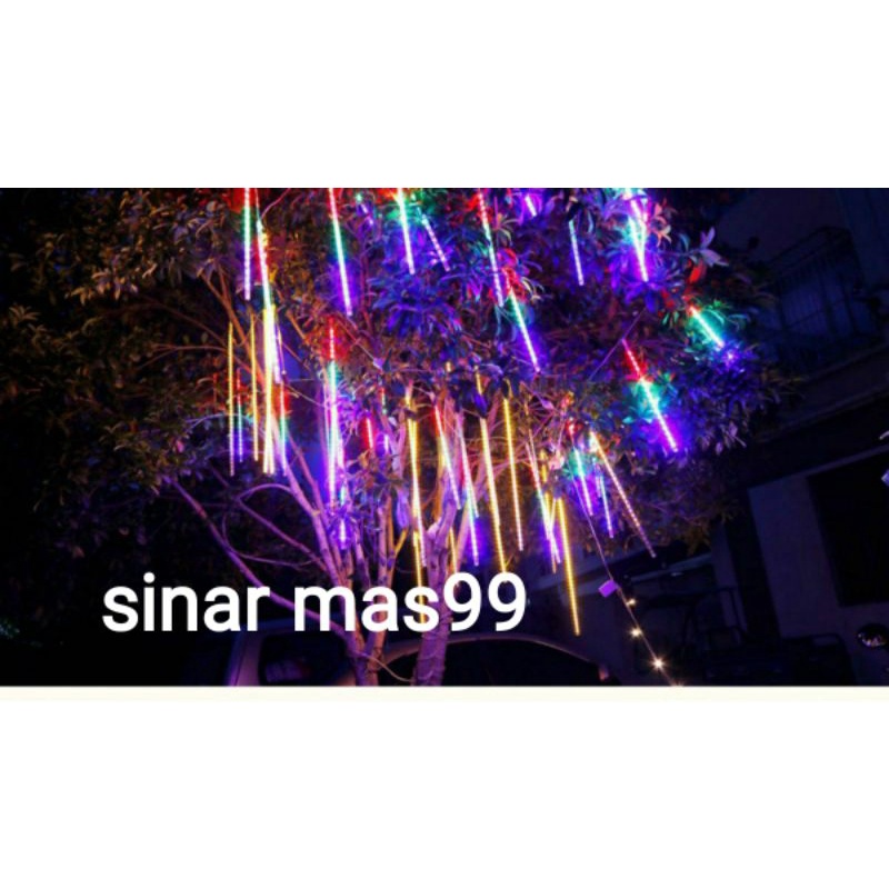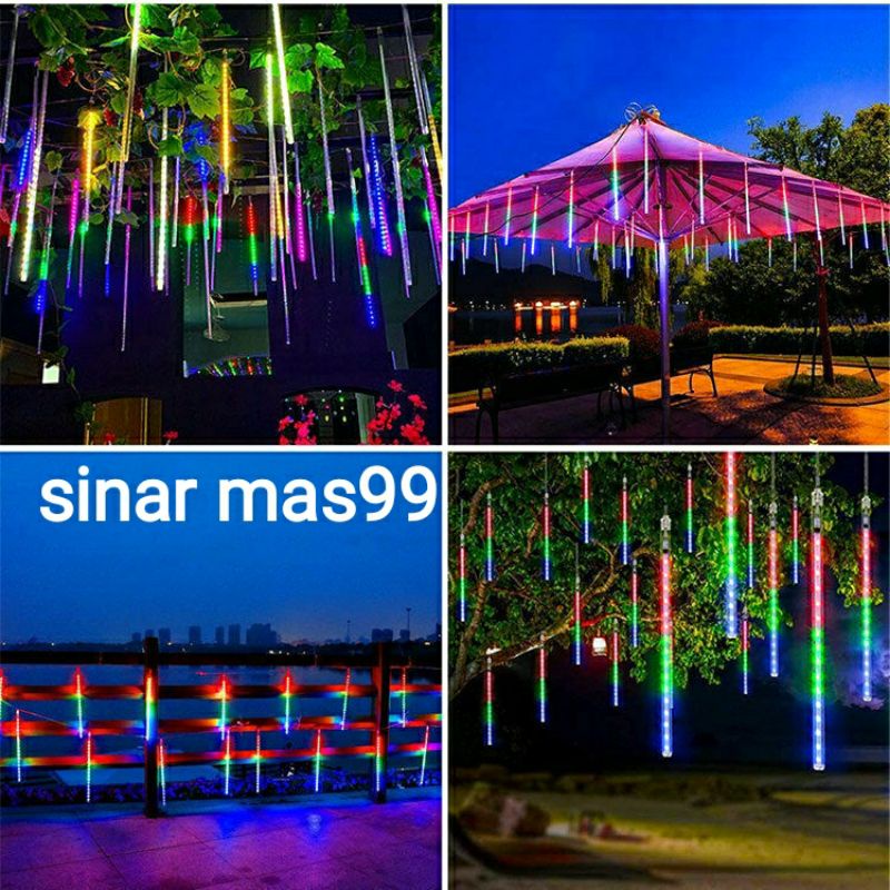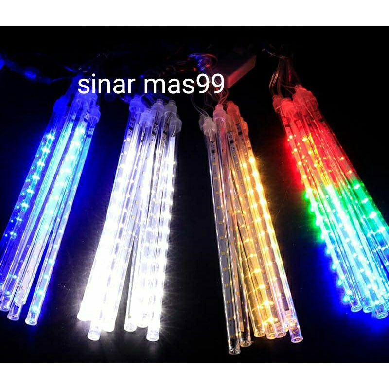 LAMPU METEOR 8 LAMPU DAN 10 LAMPU 50CM METEOR RAINBOW RGB BIRU PUTIH WARM WHITE