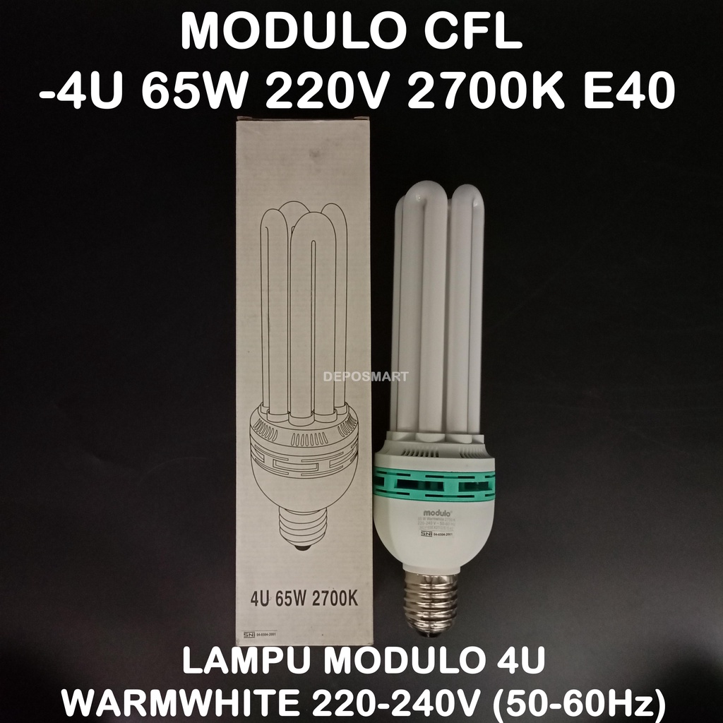 LAMPU PLC 65W KUNING 4U E40 MODULO CFL -4U 65W 220-240V 50Hz 2700K E40 WARMWHITE