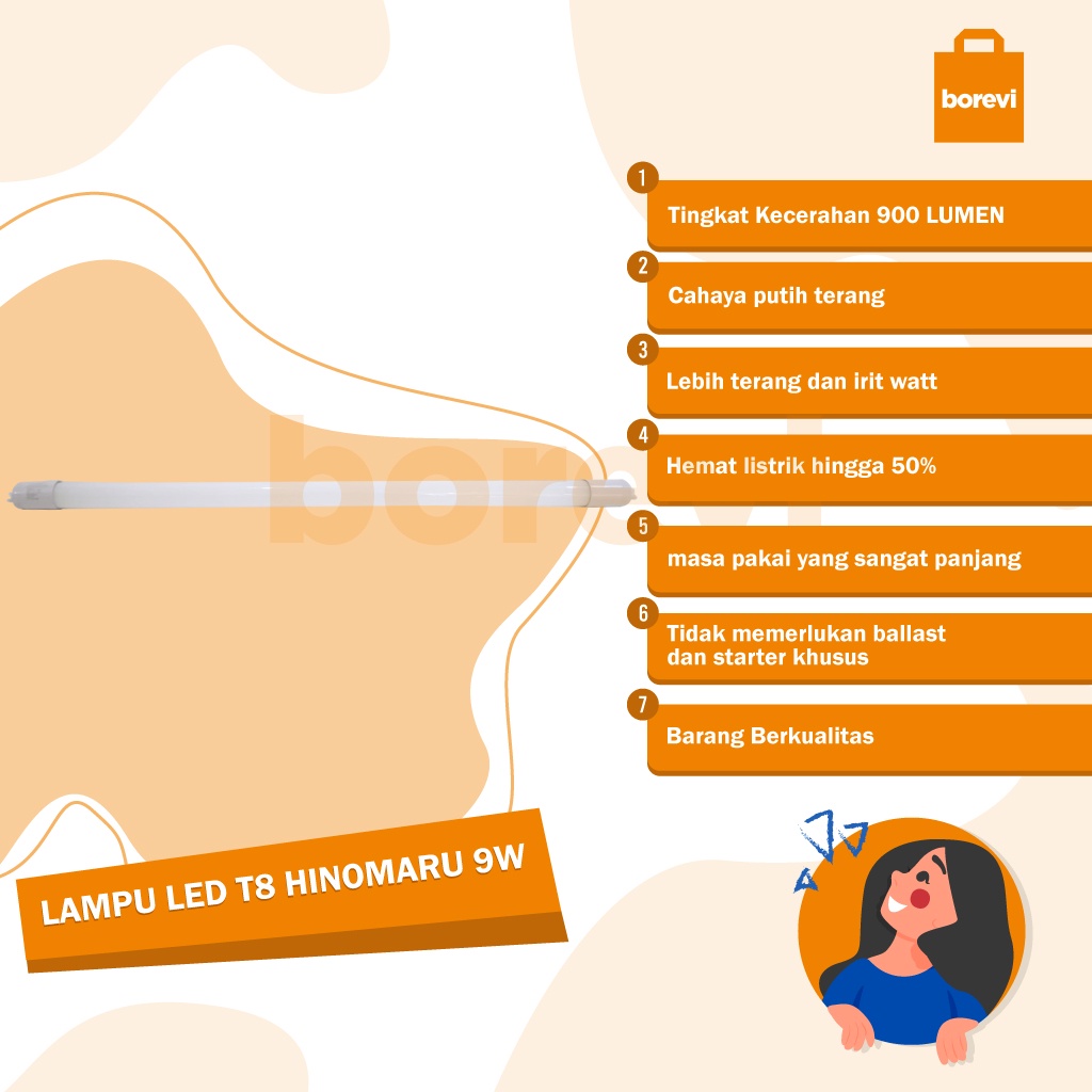 LAMPU NEON TL LED T8 HINOMARU 9W / TL T8 TUBE 9 WATT 60CM HINOMARU