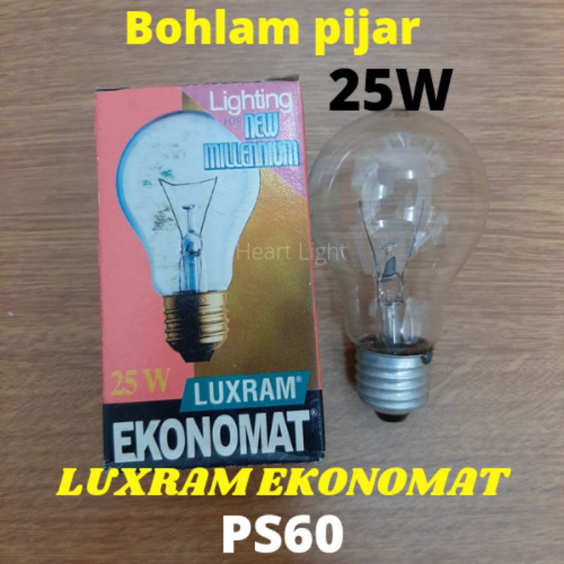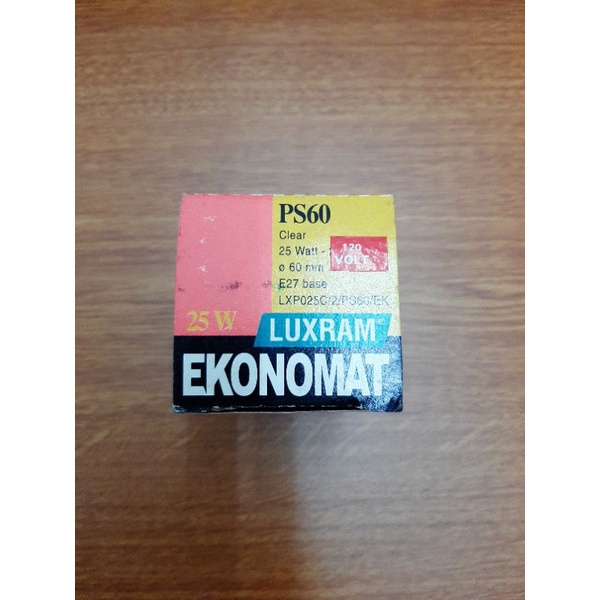 LAMPU PIJAR LUXRAM EKONOMAT 25W KUNING PS60 CLEAR 120V/BOHLAM PIJAR 25W KUNING E27