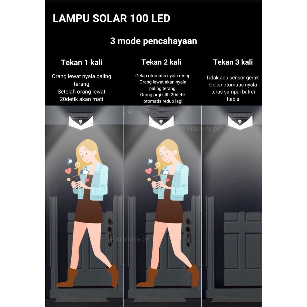 LAMPU SOLAR CELL 100 LED LAMPU TAMAN OUTDOOR 100LED LAMPU DINDING 100 LED SENSOR GERAK