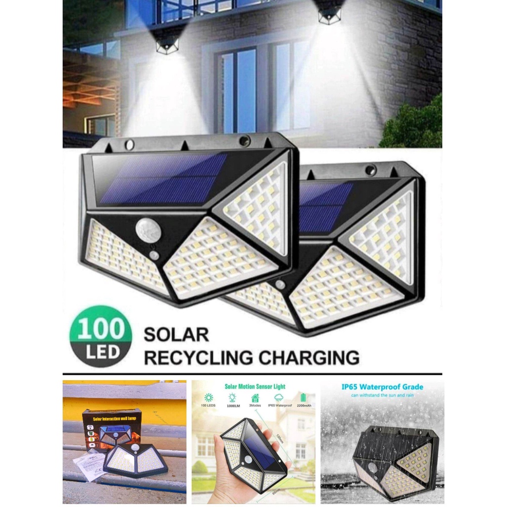 LAMPU SOLAR DINDING E116 | Lampu Solar Tenaga Surya 100LED Recycling Charging Lamp Dinding Taman Sensor Gerak Sinar Matahari