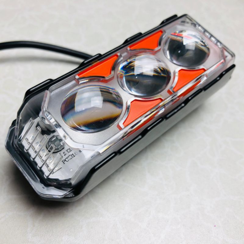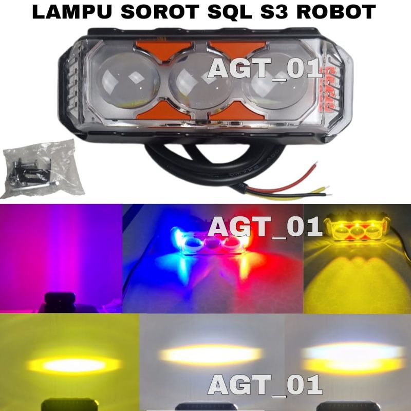LAMPU SOROT SQL S3 ROBOT DEVIL / LAMPU TEMBAK 3 MATA DEVIL RED BLUE / LAMPU SOROT MOTOR DAN MOBIL UNIVERSAL / LAMPU TEMBAK MOTOR MOBIL / LAMPU SQL S3 ROBOT MODE SENJA KEDIP DAN DIAM RED BLUE Car Kabel
