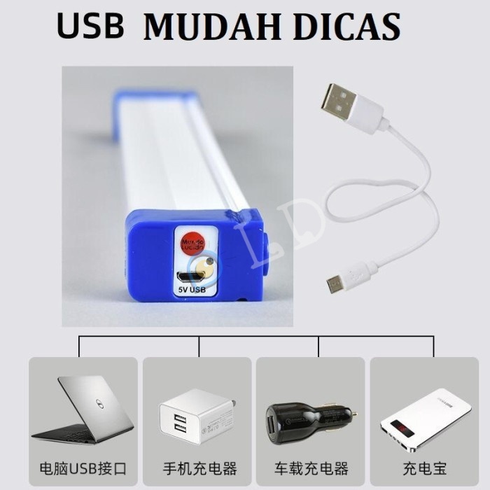 LAMPU T7 NEON 30W PORTABLE LED PANJANG 17cm USB MAGNETIK Emergency Lamp Darurat Mati Lampu Mancing Terang untuk Camping Outdoor Kemping belajar sistem cas bisa pakai powerbank