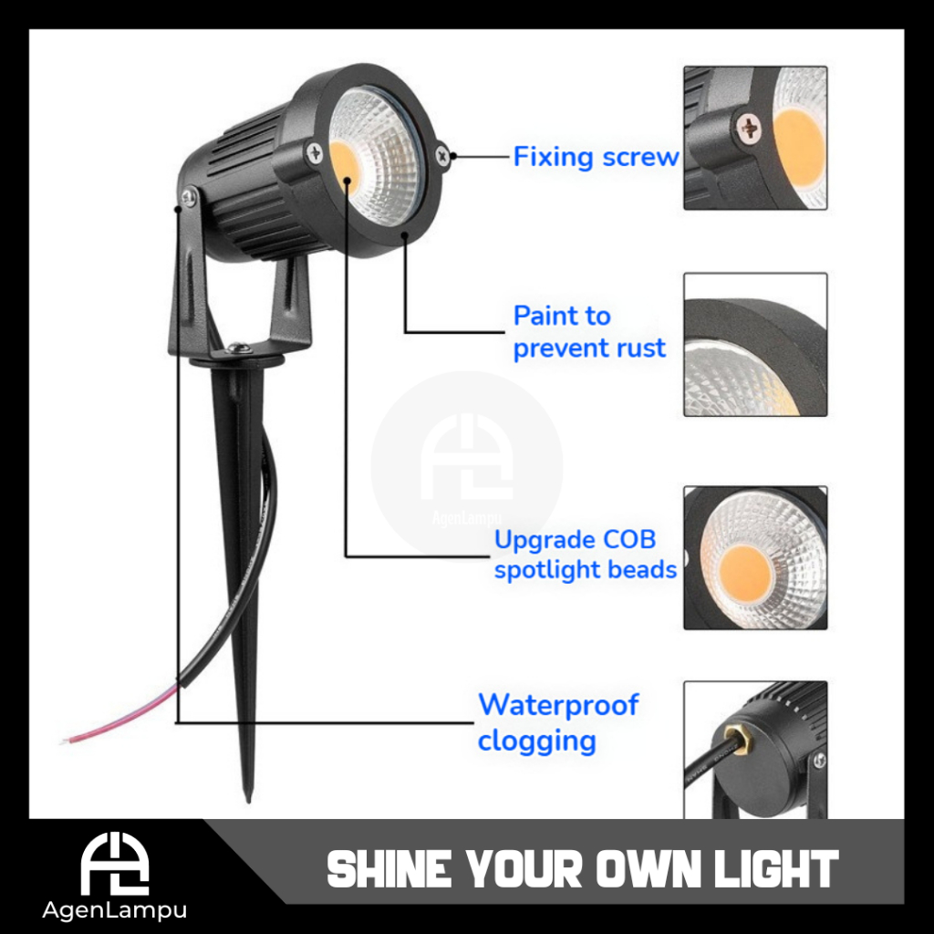 LAMPU TAMAN LED HALAMAN LAMPU SPOTLIGHT 5W COB TERAS OUTDOOR TAMAN SOROT TANCAP SPOT GARDEN PARK LIGHT 5 WATT