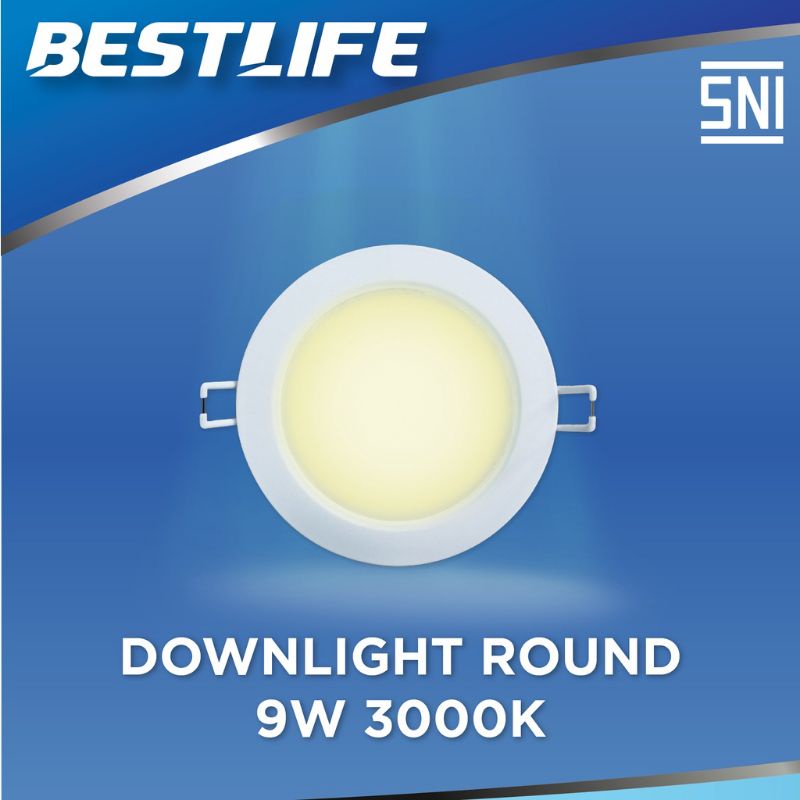 LAMPU TANAM ATAP PLAFON TEMPEL PANEL DATAR DOWN LIGHT BEST LIFE DOWNLIGHT LED 9 WATT 3000K BESTLIFE BL-LED-DWL-R01-9W
