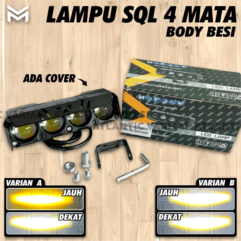 LAMPU TEMBAK MODEL SQL 4 MATA / LED LASER GUN STANBY 2 MODE HII LOW SUPER BRIGHT WATERPROOF LAMPU LASER SOROT DEPAN MOTOR INCLUDE BREKET BAUT GODD QUALITY MOSCOW COVER LASER GUN KIPAS LAMPU UNIVERSAL MOTOR MOBIL AVANZA FINO FUSO TRONTON BUS PICK UP SCOOPY