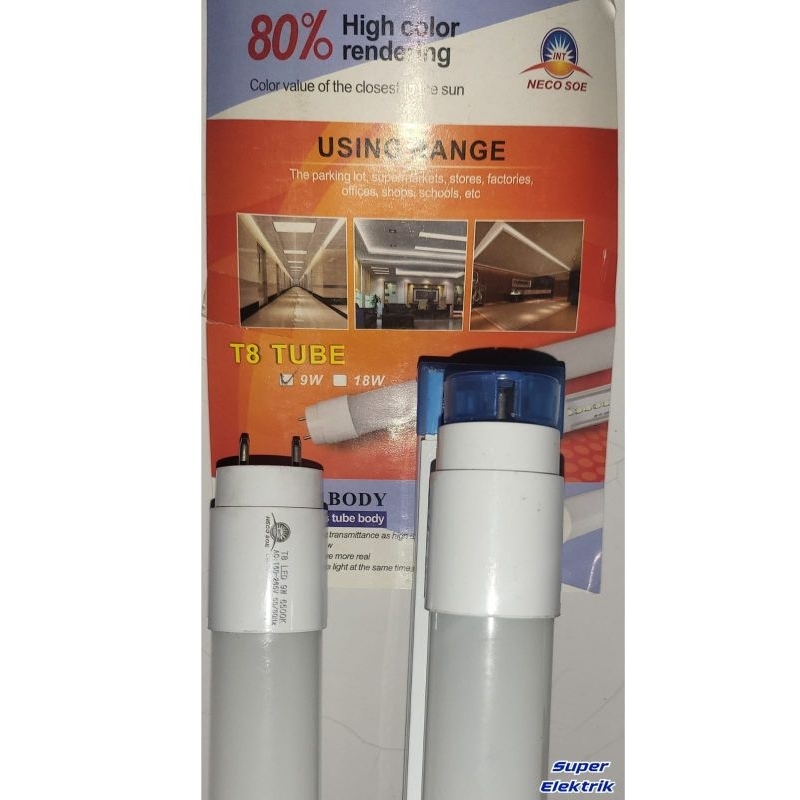 LAMPU TL LED T8 NECOSOE LAMPU NEON LED TUBE 9W NECO SOE SUPER TERANG LANGSUNG NYALA