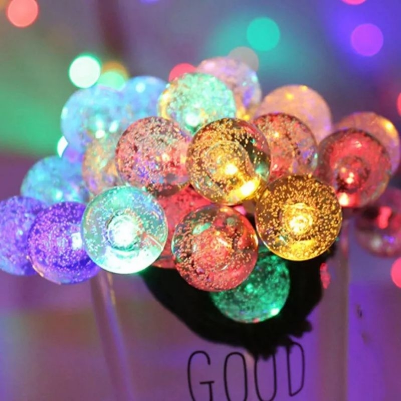 LAMPU TUMBLR LED RAINBOW MOTIF BOLA CRYSTAL/ LAMPU NATAL CRYSTAL LAMPU NATAL HIAS/Lampu Natal Hias Warna-warni 3 Meter Motif Bulan Bintang Crystal Bola Anggur Salju/ Lampu Tumblr LED Rainbow Dekorasi